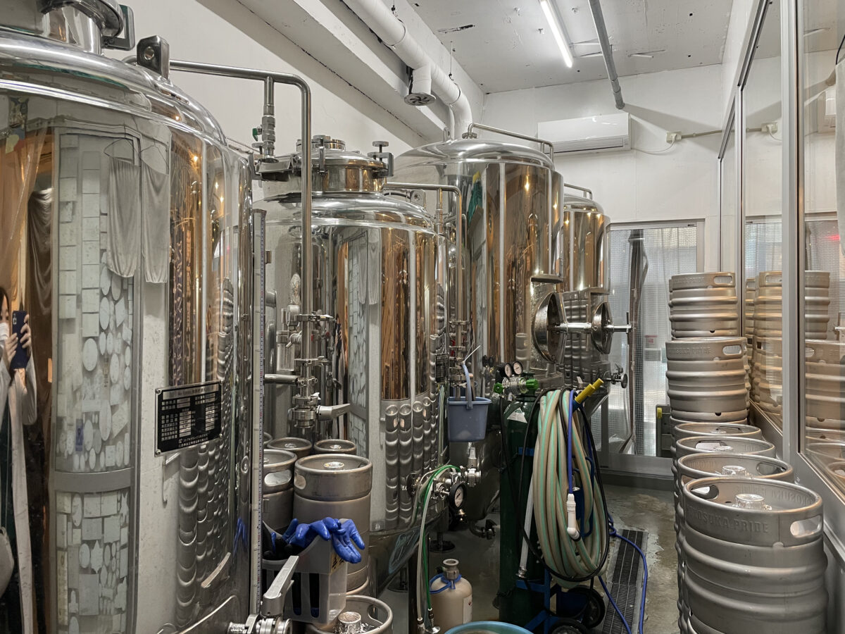 横須賀ビールの特徴は、地元の湧水や地元で生産された小麦粉や生姜、季節の食材を使用したクラフトビールを製造している点です。タンクには1000リットル・500リットルタンクが並んでいました。