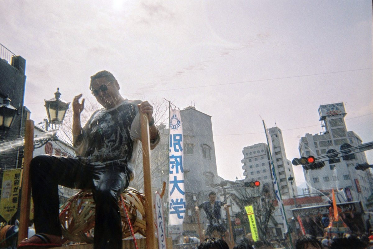 沿道でお湯には掛からず見ることも出来ますが、やはりぶっかけられてナンボのお祭りなので、濡れる覚悟を持って参加した方が数倍楽しめます。温泉をぶっかけられて、その後温泉に入りに行くというのが別府っ子の楽しみ方です(笑)