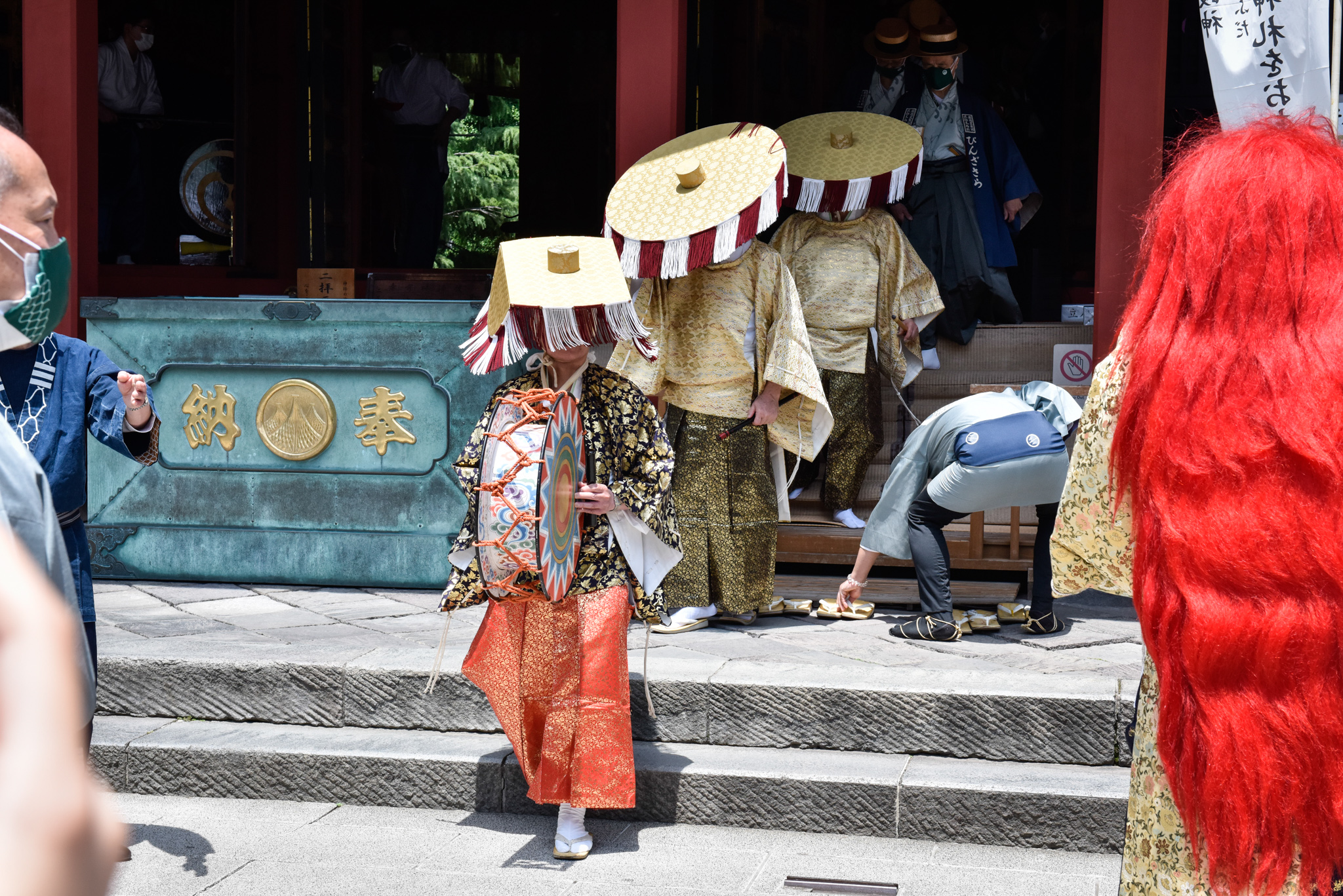 もともと日本全国の獅子舞を取材して回っている私は、田楽の広がりが獅子舞を全国に伝えるきっかけにもなったため、田楽の伝播性にとても関心があった。田楽の一種である浅草神社のびんざさら舞は「ささら舞」と「獅子舞」から構成されており、どちらも日本古来の祭礼の形を今に伝える舞である。古風で華やかな舞いを見るとともにその歴史を知るべく、5月15日に浅草神社へと向かった。