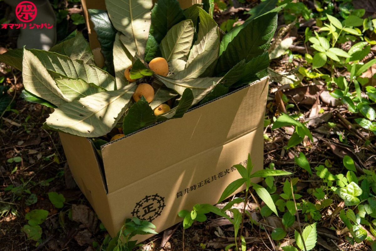 筒井時正玩具花火製造所で収穫したびわの選別作業をしました。