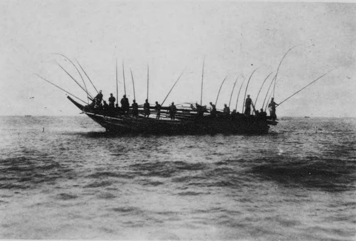 大正時代の鰹漁船。『日本名勝旧蹟産業写真集 中国・四国・九州地方之部 新訂』より「鰹漁の実況」(国立国会図書館蔵)