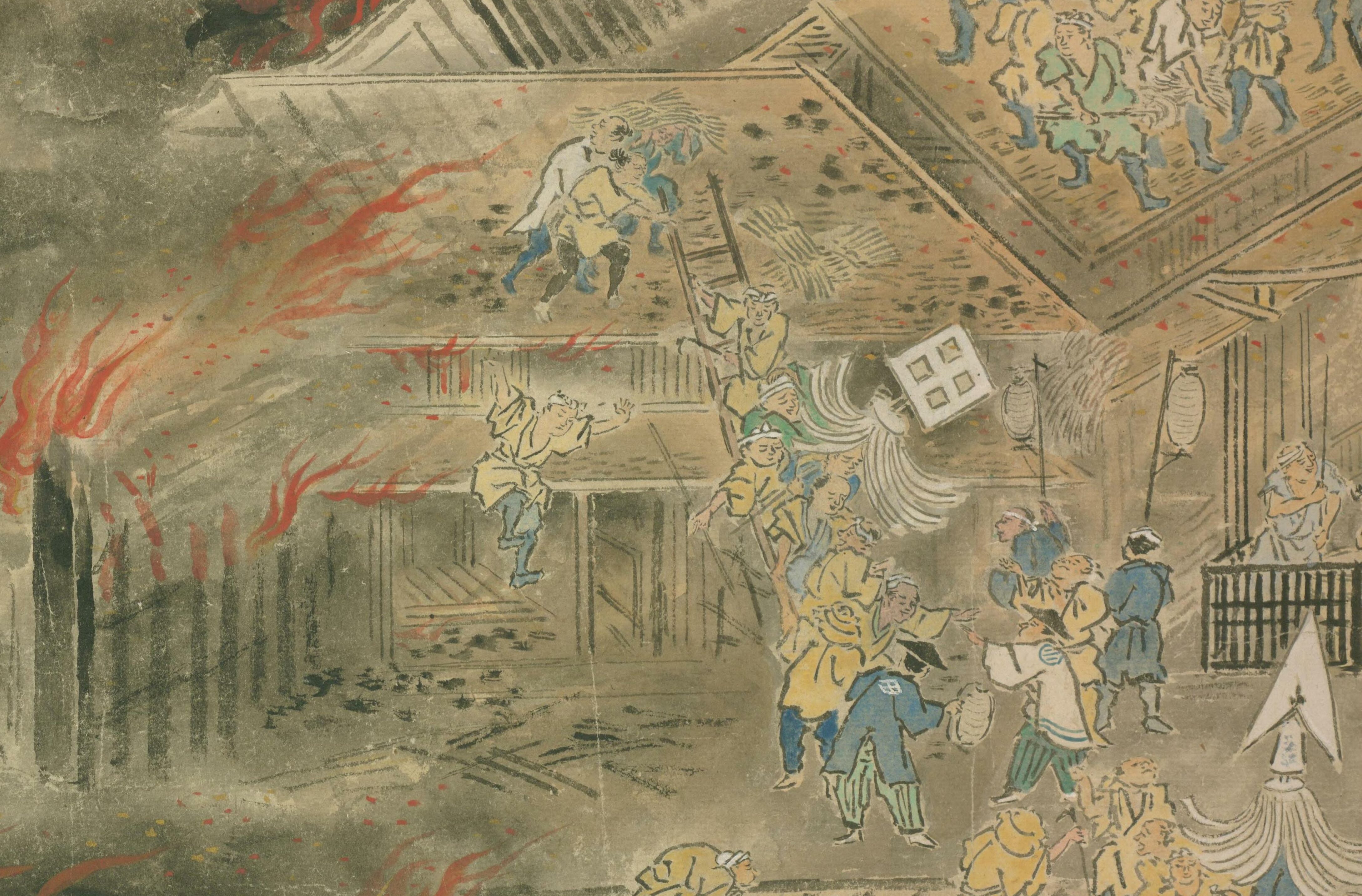 火事の多い江戸のまち。燃えておっ死んでしまうのはつまらねぇから、宵越しの金は持たねぇよ。という江戸っ子気質が生まれたと言われますが、火事に遭わないように急いで風呂に入るとか、用を足すという生活が、江戸の人々をせっかちにさせたようです。