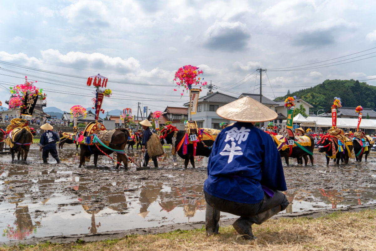 下の写真はその一例である広島県で行われる壬生の花田植。田を儀礼の場とし、また田をならすのに使うエブリに田の神が依りつくといわれるなど、精霊信仰の面影が残っています (*34)。