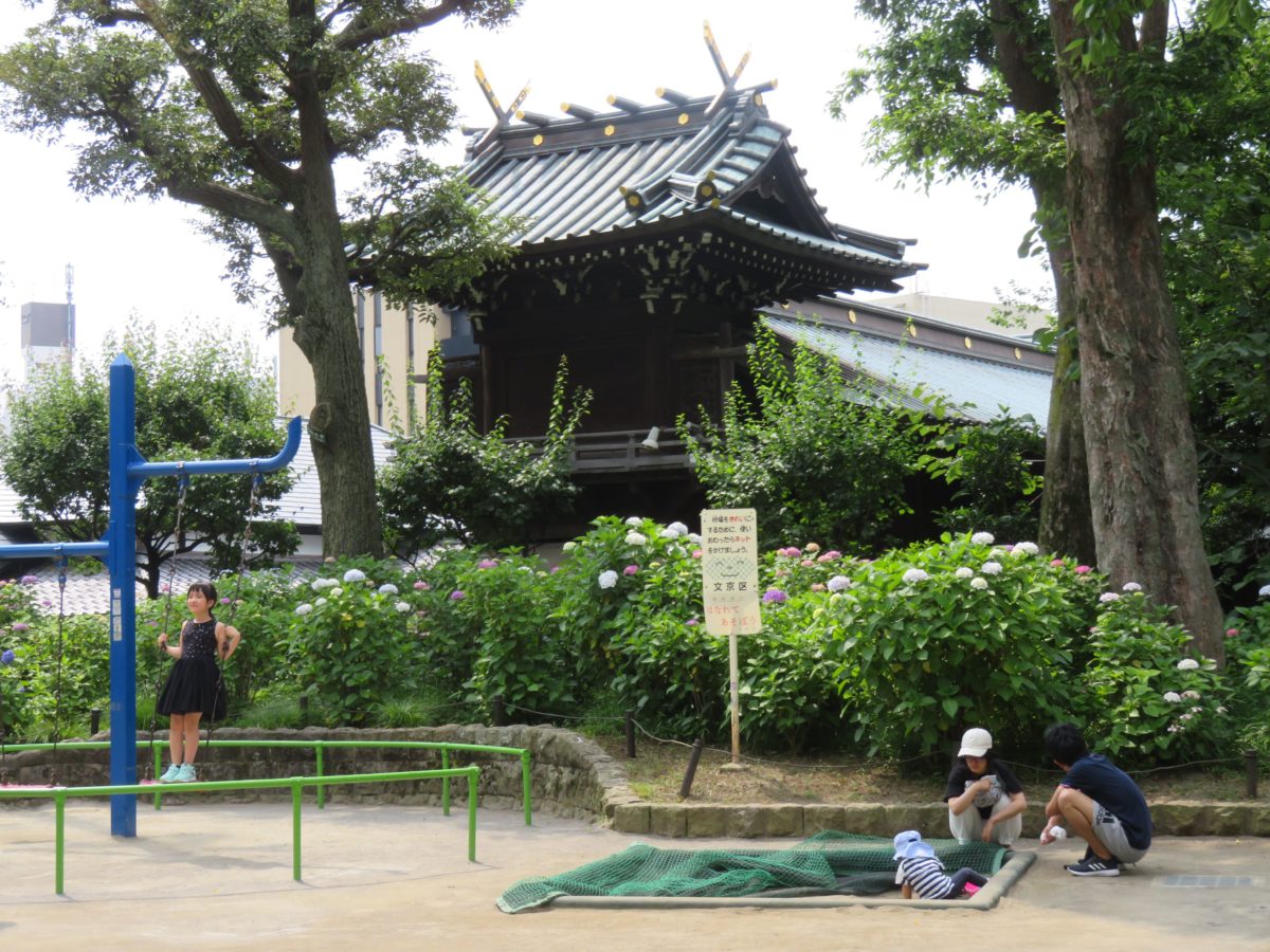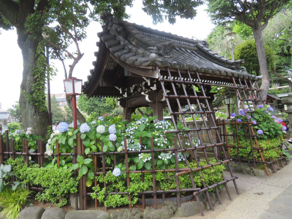 「文京あじさいまつり」は「文京花の五大まつり」の一つに数えられています。メイン会場への入口となる白山神社の鳥居を潜ると、早速あじさいの花が出迎えてくれます。