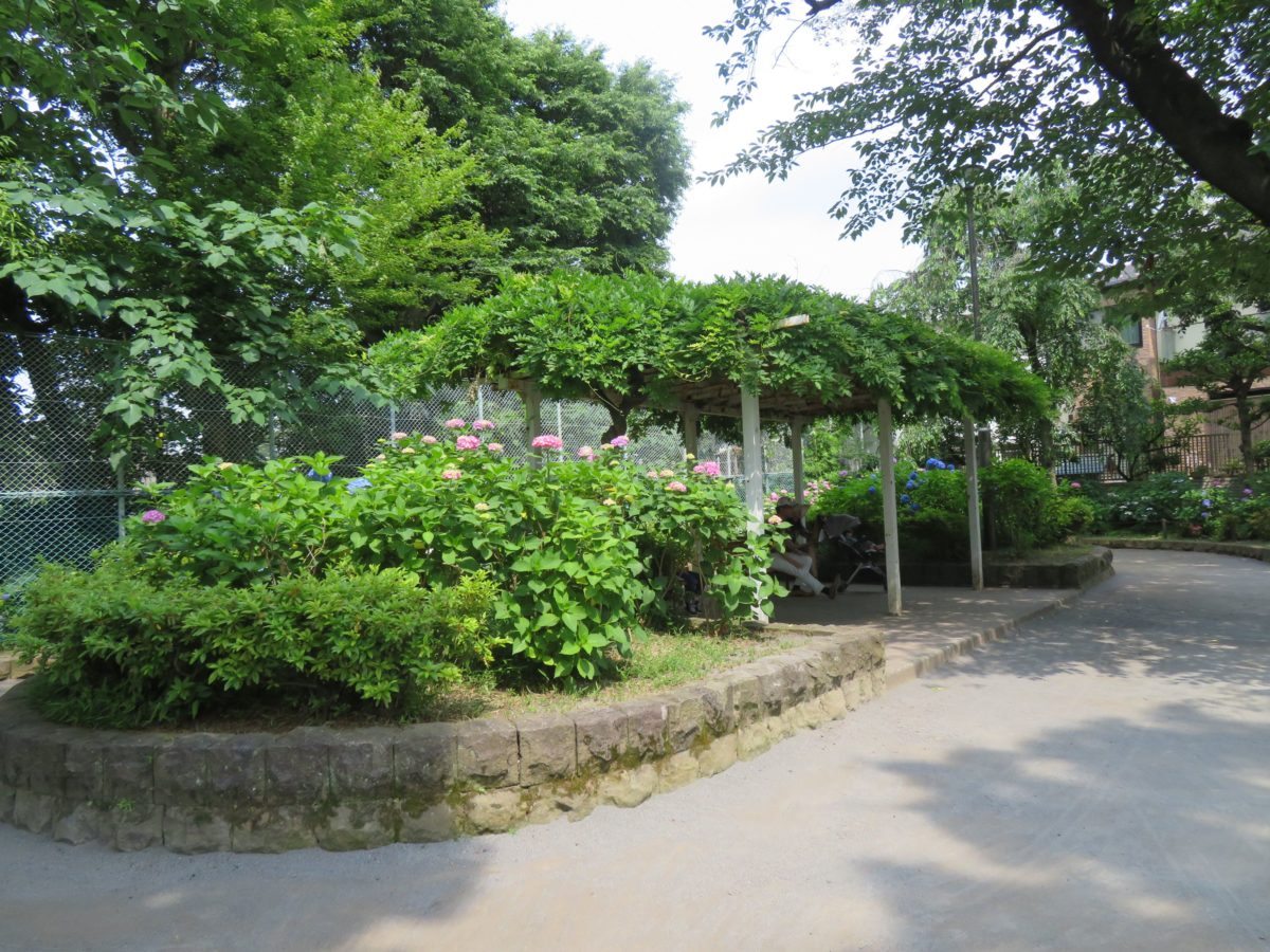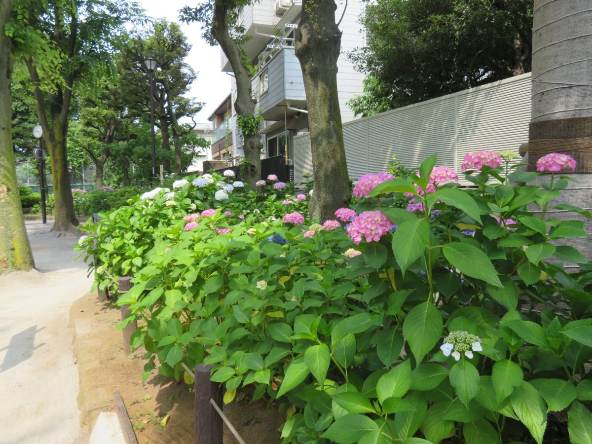 白山地区のあじさいは神社に留まらず、北に接する白山公園にも溢れ出しています。