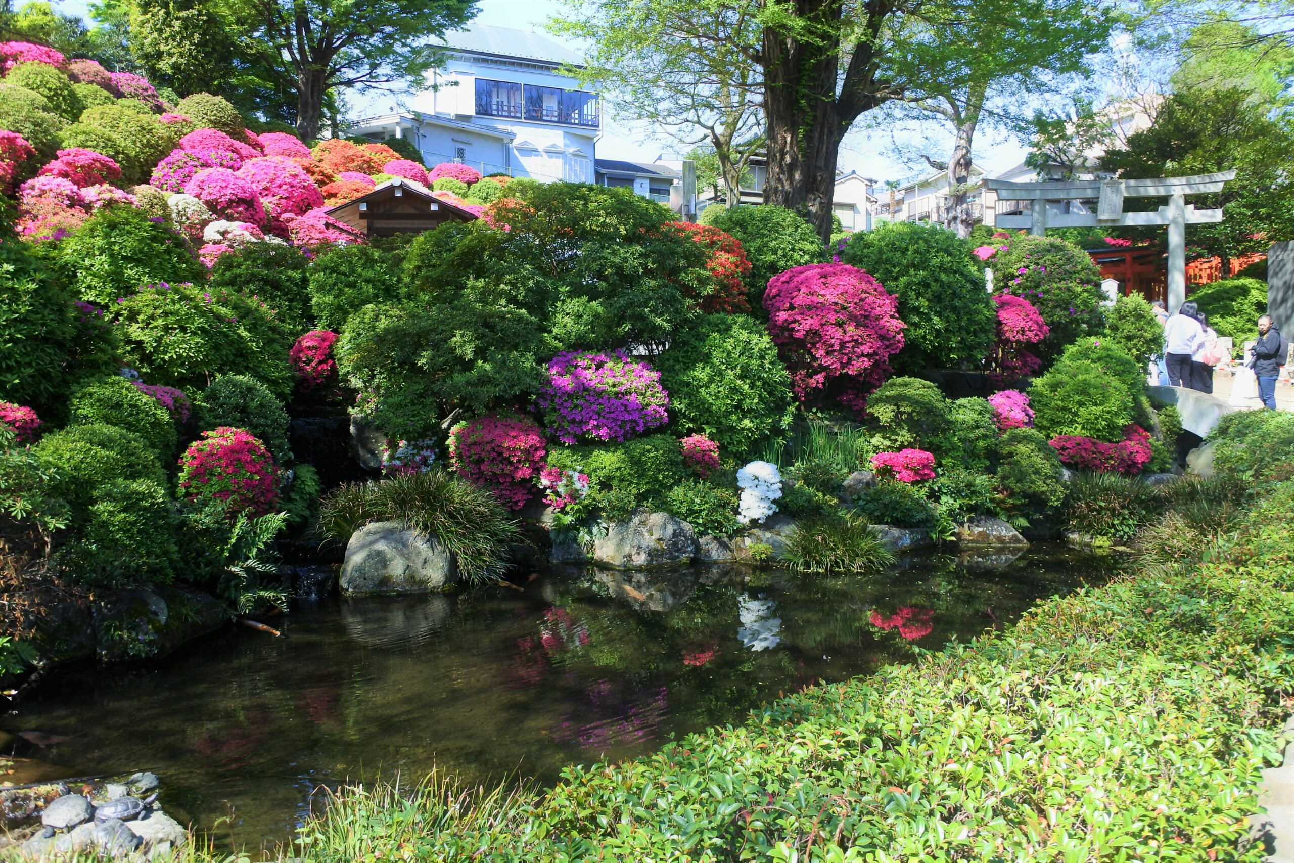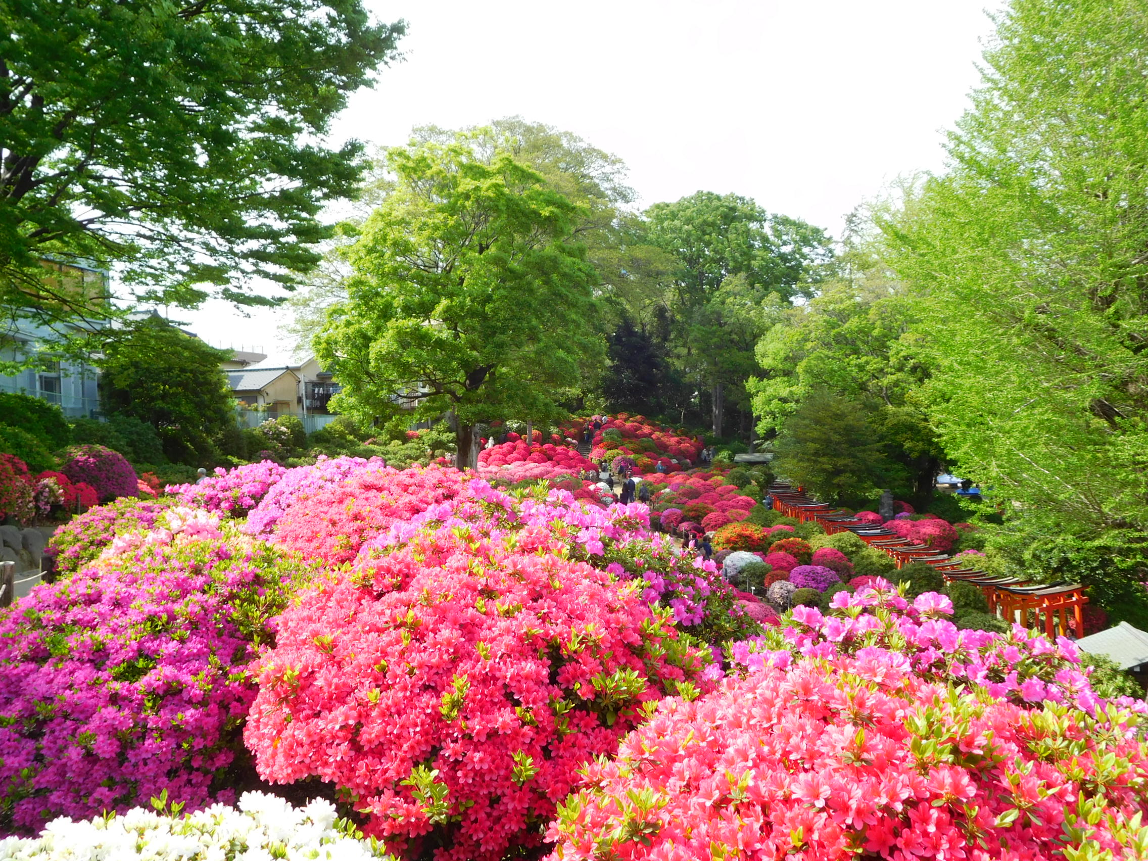 根津神社は、1900年余の歴史を誇り、本殿をはじめとする江戸時代の建築が残る由緒ある神社。境内の西側には約2000坪のつつじ苑があり、例年4月~5月にかけて、色鮮やかなつつじが苑内を染め上げます。