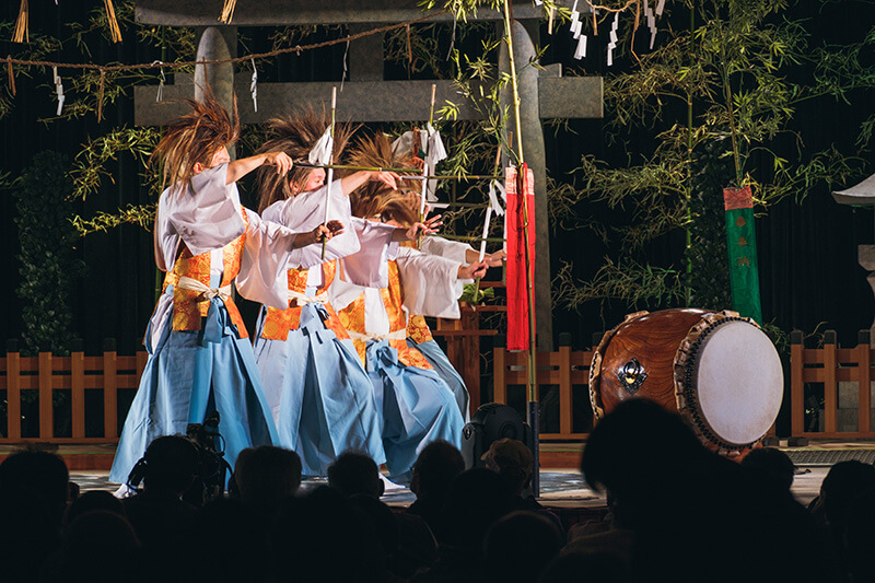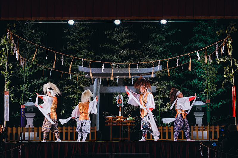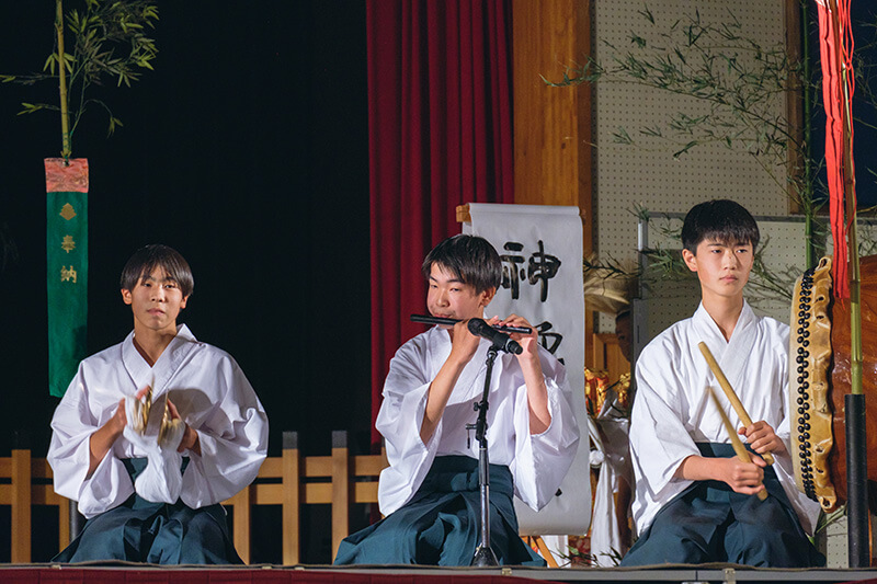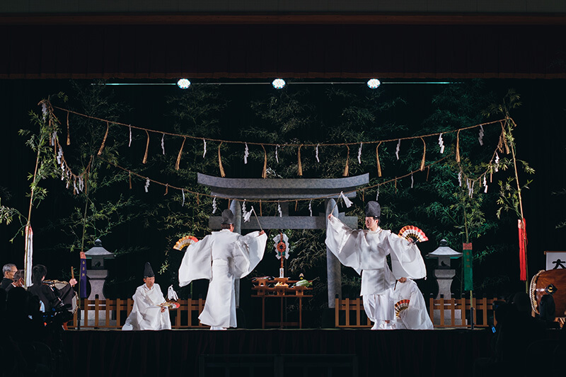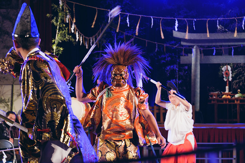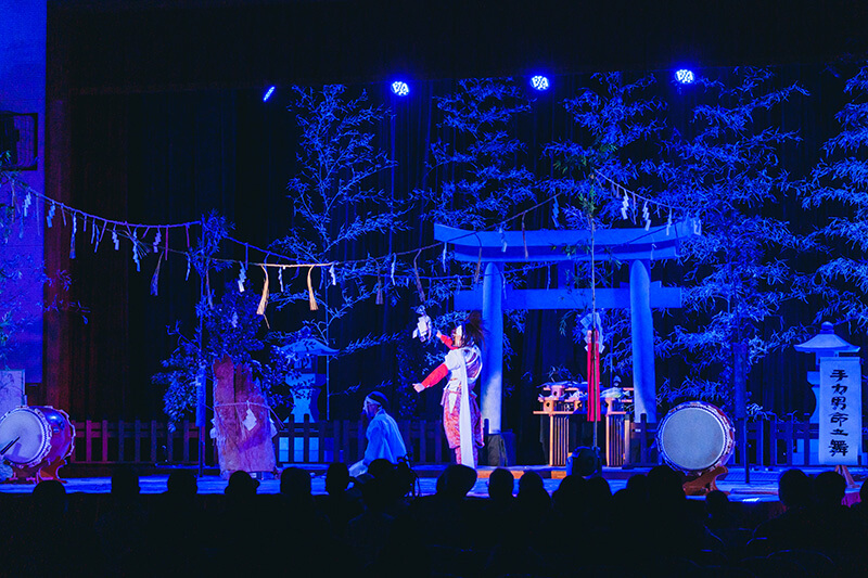 式神楽後半7つの演目は、手力男命の舞で幕を閉じる。天照大御神が天岩戸屋に姿を隠した為、闇に覆われ、いたる所で禍が生じてしまう。そこで八百万の神々が岩戸の前で様々な試みを行うという場面である。そしてこれは、コロナ禍に喘ぐ現在の我々の姿と重なる。闇夜に光を取り戻す神々の試みを私たち一人ひとりが、今こそ始める時ではないだろうか。ふとそんなことを思った。