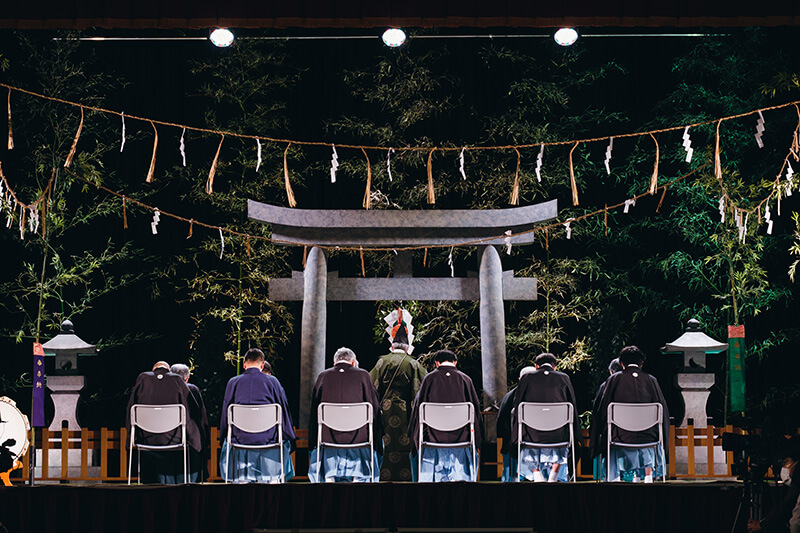 祭りは終わった。感傷に浸る間もなく会場の片付けが始まる。舞台の解体が進む。神楽舞の他は、実行委員であった市職員とボランティアがそれを担う。裏方に徹し汗を流す普通の人達だ。忘れてはならない。伝承芸能や地域コミュニティーを支えているのは他ならぬ普通の人達なのだ。 「次世代への責任」とは、重い言葉である。コロナ禍、全世界の伝承芸能のみならず、地域コミュニティーが危機に晒されている現代社会にあって、この言葉の持つ意味は大きくて深い。 未曾有のコロナ禍、「ぶぜん神楽まつり」は中止という選択肢もあり得た。しかし、実行委員会はリスクを引き受け、背負い開催に踏み切った。この決断は、闇夜に光を取り戻す試みであり、「次世代への責任」の実践に他ならない。