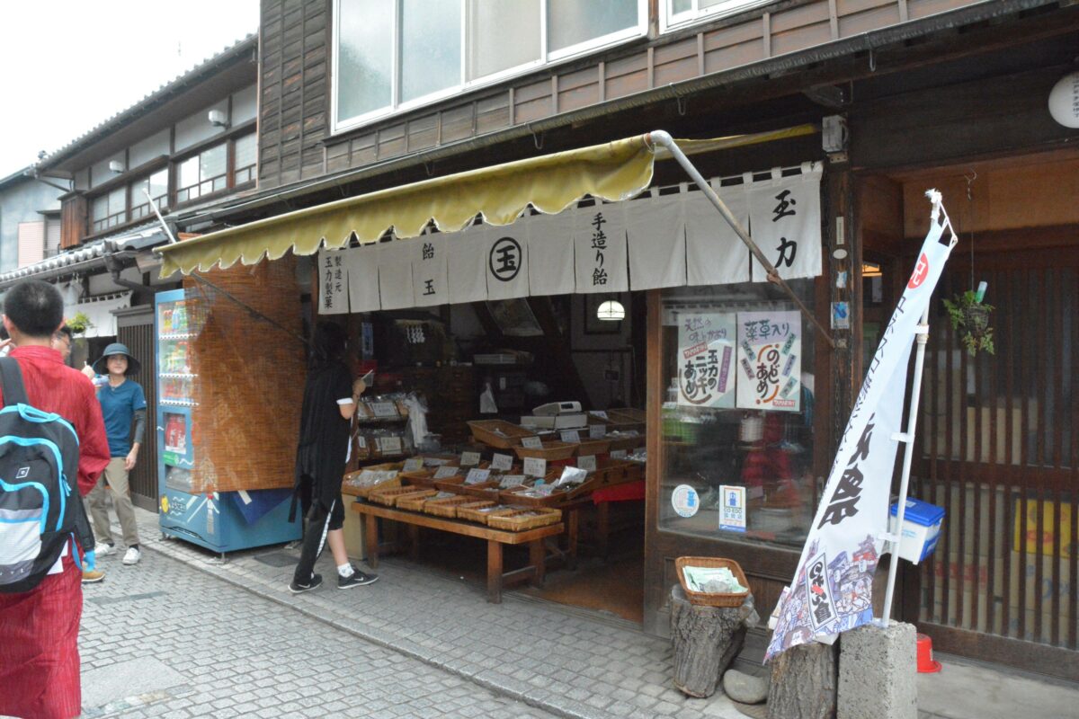 菓子屋横丁のメインストリートに店舗を構える「玉力製菓」の店先