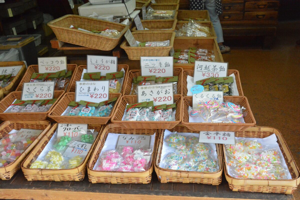 「小江戸茶屋」で販売される手作り飴の粒ぞろえ
