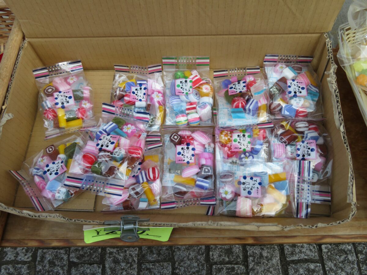 「松陸製菓」の店先に並ぶ手作り細工あめ