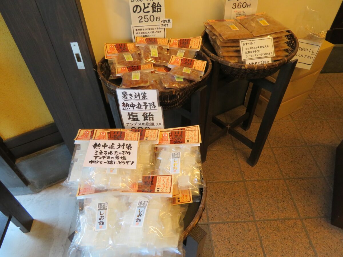 「松陸製菓」の店先に並ぶ手作りの蜂蜜玉や水晶ハッカ