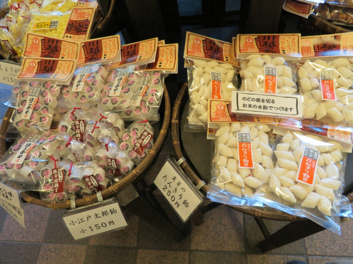 江戸時代には固形の飴を作る飴細工の職人が現れ、伝統の和菓子として定着していきます。明治維新後には小江戸の別称をもつ埼玉県川越市の養寿院の門前町に和菓子職人が集まるようになりました。菓子屋横丁には昭和初期には約70軒の菓子店がひしめき合っていたようです。現在では約20の店舗が軒を連ね、江戸っ子好みの気取らない菓子が販売されています。