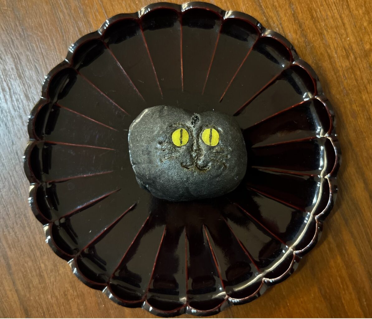 3匹目は黒猫(竹炭生地×黒砂糖あん)。個人的には、今回一番のお気に入りのフレーバー◎ あんについた黒砂糖の香りがはっきりとわかり、和のおいしさが満点。竹炭は生地の味には大きな影響はないように感じました。なめらかな餡子に黒糖の甘みと香りが乗って、これが緑茶に合う~!