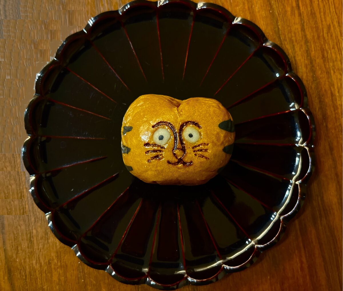 4匹目はとら猫(黒砂糖生地×粒あん)。生地の黒糖がほんのり感じられ、コクがある感じがします。粒あんではありますが、ゴロゴロ系ではなく生地のしっとりさによく合うつぶあんでした。なんだかなつかしさのある、落ち着く味です◎