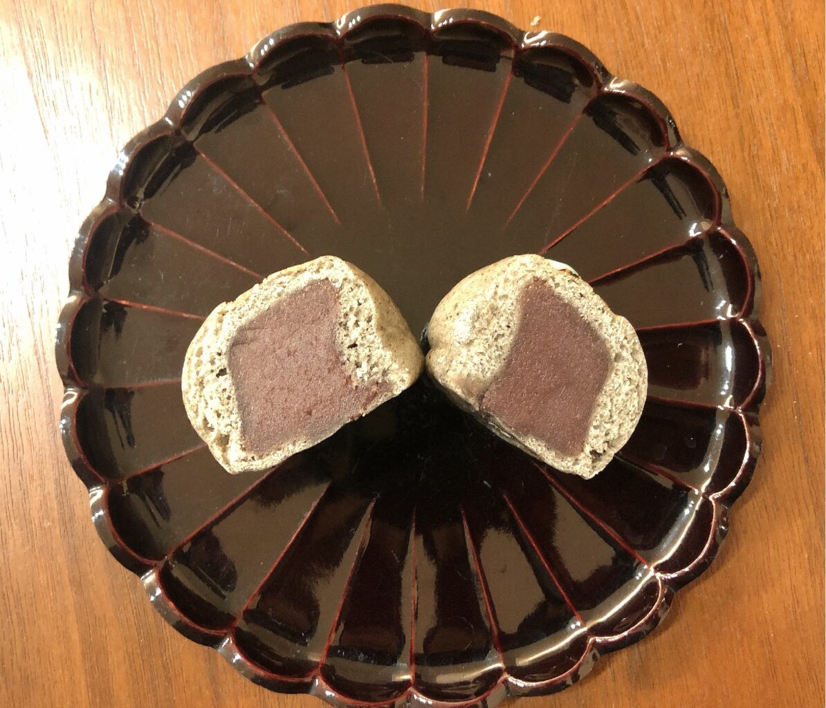 まずはロシアンブルー(黒ごま生地×小豆こしあん)。おまんじゅうらしい、しっとりと蒸した生地がたっぷりの餡とあわさりとても美味しいです。黒ゴマの風味はそこまでキツい感じはせず、ほんのりといています。見た目だけかと思いきや・・・とっても品のいい和菓子で、年上の方へのプレゼントにも良さそう!
