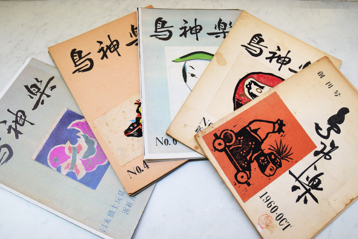 会報誌の『鳥神楽』。一番右の鳥神楽が表紙に描かれているのが創刊号。中村さんがまだ浜松に住んでいた高校生の頃に編集していた