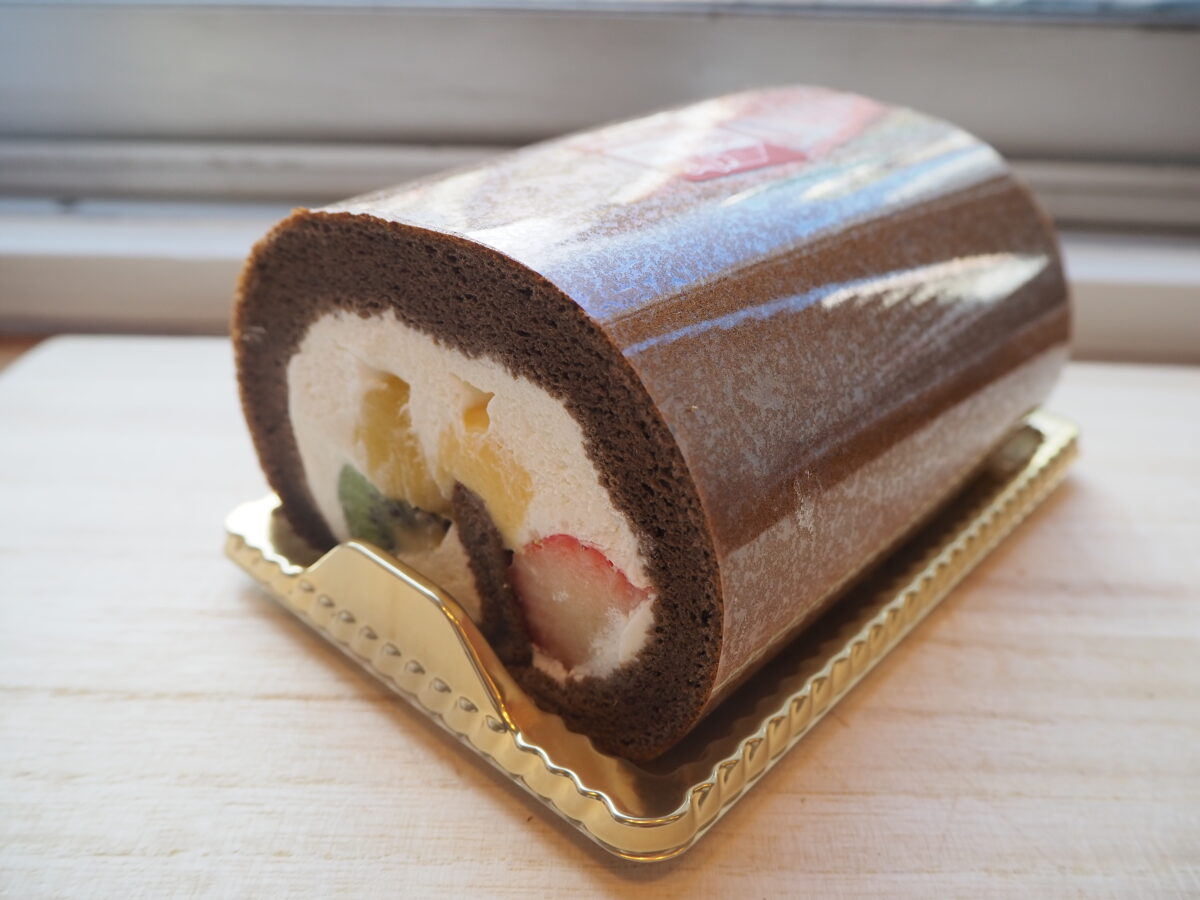 節分 恵方巻ロールは、ふわふわのココアスポンジの中にフルーツとカスタードクリーム、生クリームがぎっしり!