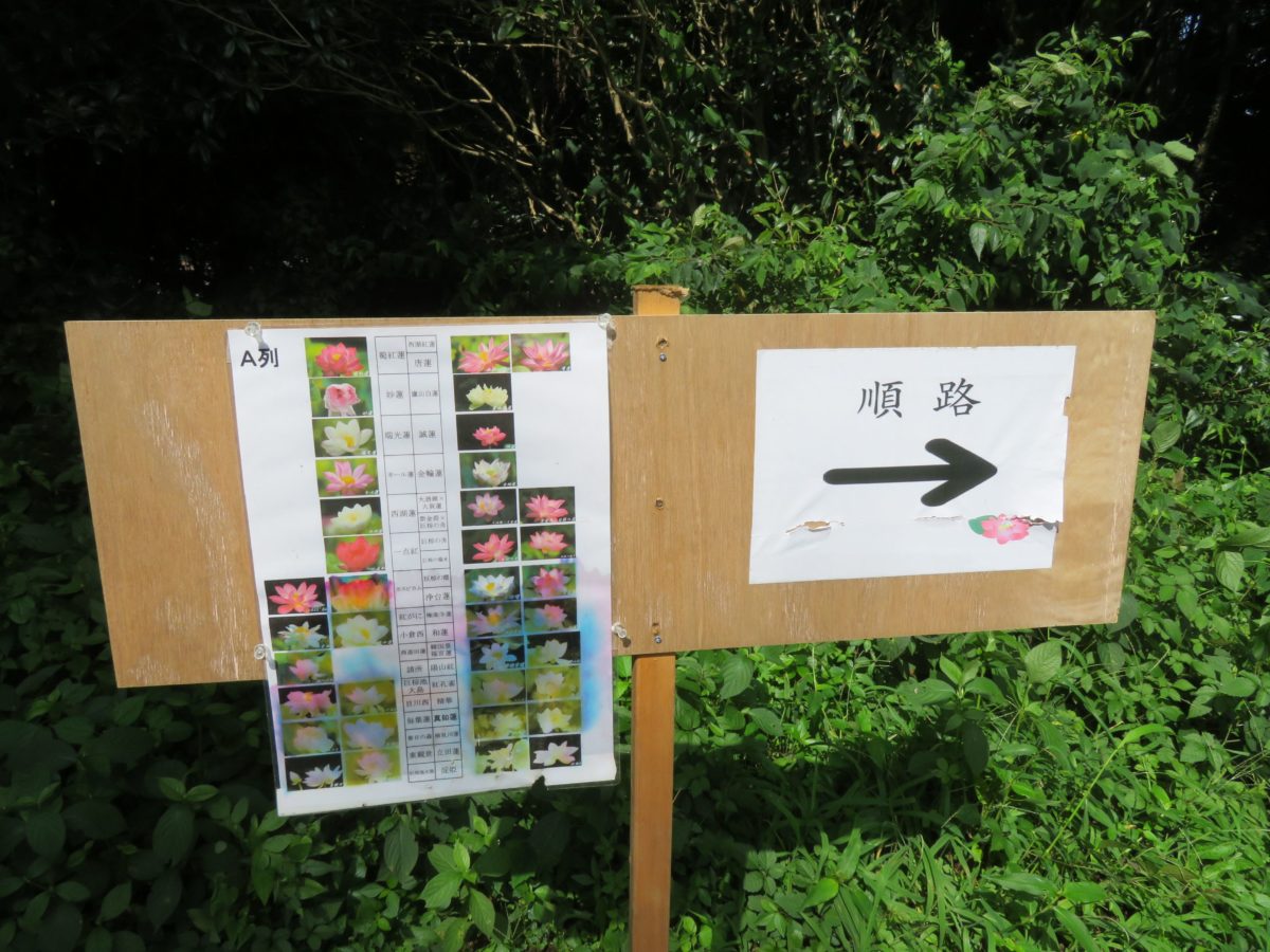 順路に従って会場を歩けば、豊富な品種のハスを漏れなく鑑賞することができます。