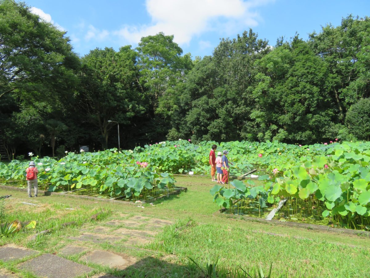 緑地植物実験所は通常一般公開されていませんが、「大賀ハス観蓮会」の開催日にはハス園に入ることができます。ハスは早朝に花を開き昼過ぎには閉じてしまうので、午前中に訪れる必要があります。
