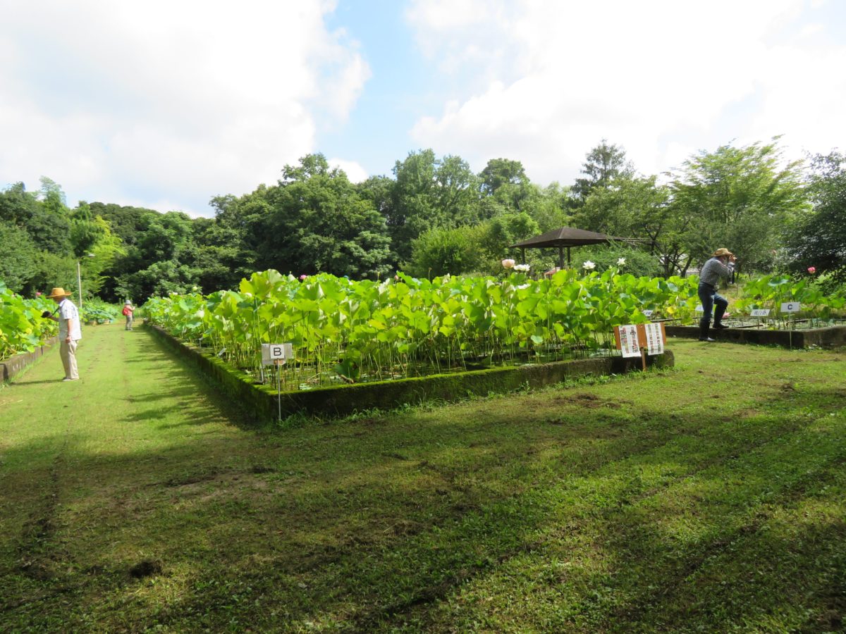 観蓮会場には数メートル四方の花壇が100前後、5つのエリアに分かれて栽培されています。