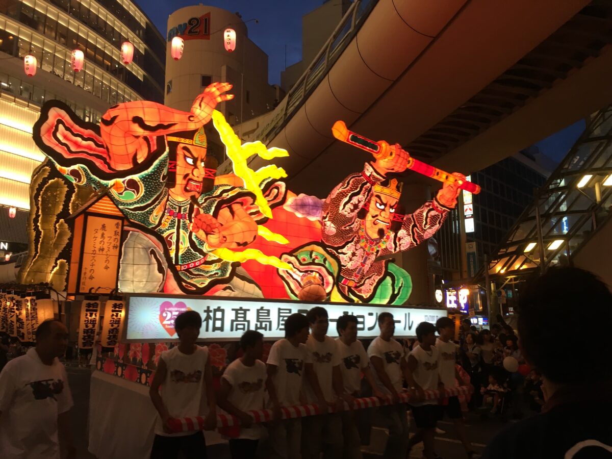 元は阿波踊りをする小さなお祭りだった柏まつりですが、地元の商工会の盛り上げにより、新たに「柏おどり」がつくられたり、「ねぶた」を登場させるなど様々な趣向で、近年では毎年70万人が集まる大規模なお祭りになりました。メインはなんといっても3基の巨大なねぶた。観客の目前までねぶたが近づく、非常に迫力のある催しとなっています。また多数の出店があり、一般の方が参加できる踊りの催しも行われます。