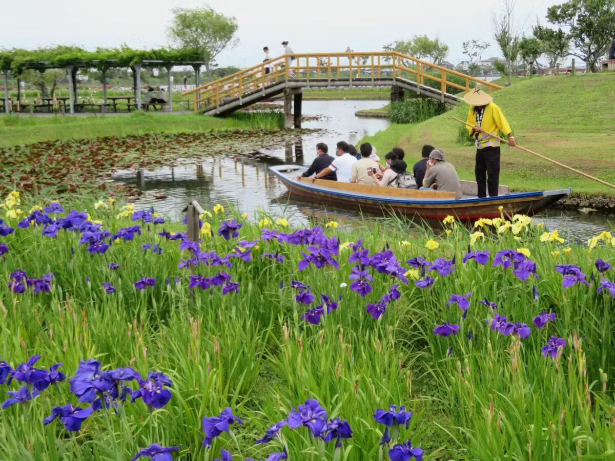 水郷佐原あやめパークで行われるあやめ祭りでは、約400品種150万本の花菖蒲が見られます。あやめの美しい紫色が堪能できるほか、園内水路をサッパ舟と呼ばれる小舟に乗ってまわることができます。