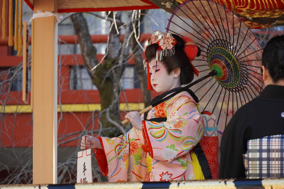 三味線の音色と長唄にのせて、妖艶な舞が行われる様子は、とても風情があります。まるで江戸時代にタイムスリップしたかのような気分に。