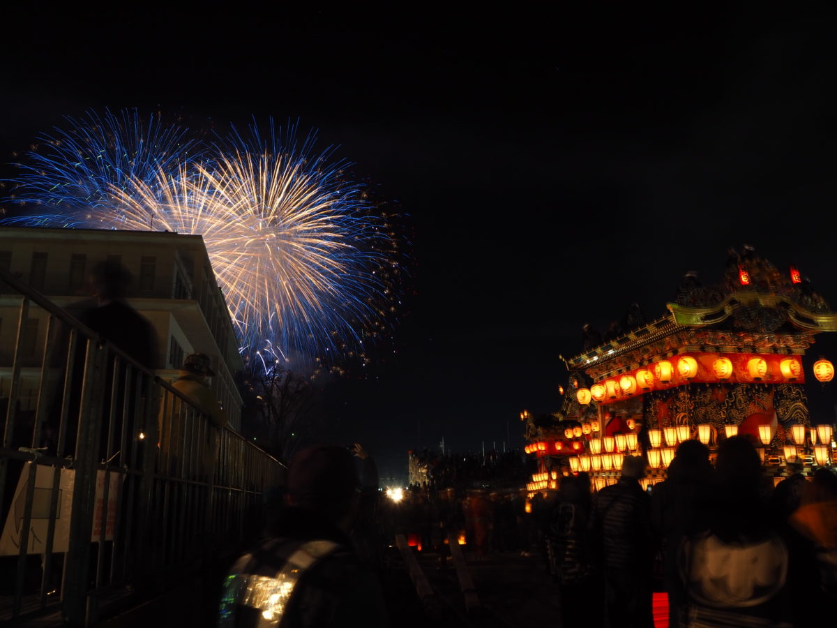 特に「御旅所」は、入場規制がかかってしまいますが、祭りの最後に屋台&笠鉾が6基集まってくる場所となりますので、御旅所での屋台&笠鉾終結を見つつ、花火を鑑賞すると見ごたえがありおススメです!