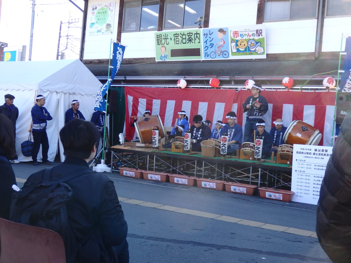 初日の12月2日は宵宮と呼ばれています。10:00から秩父神社の神楽殿で「秩父神社神楽」奉奏が行われた後、11:00頃には山車の曳き廻しが始まります。
