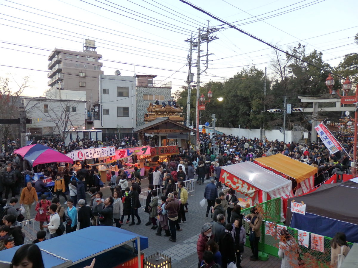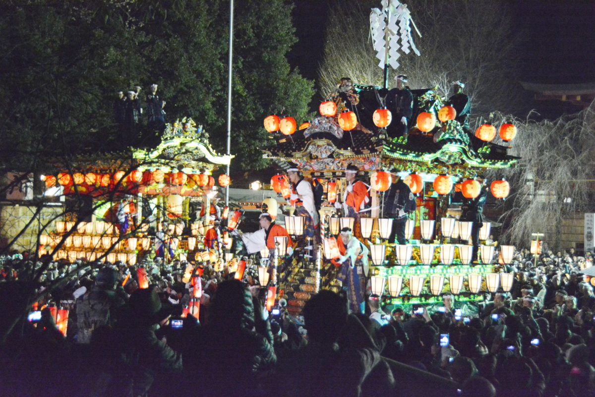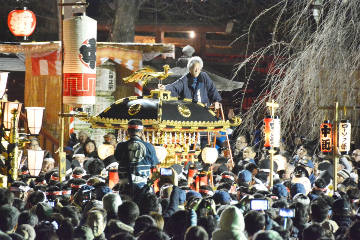 様々なイベントで気分を盛り上げ、クライマックスの時を迎えます。太陽が西に沈む頃には、秩父神社の境内からは熱気が溢れ出すばかりでなく、敷地に入れない人が逆流してきます。