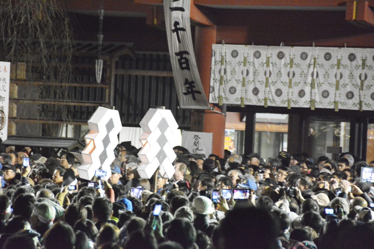 「秩父夜祭」当日に秩父神社に参拝する人々