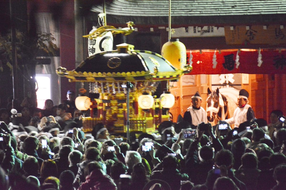 ■冬の夜空を背景に極彩色の歴史絵巻が折り重なる本祭・本宮の御神幸行列