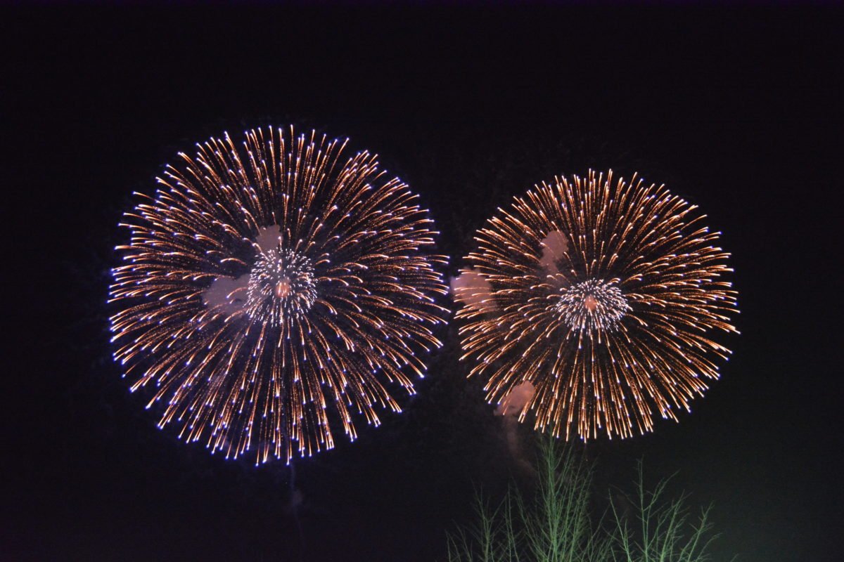 御神幸行列の先頭が御旅所に到着する20:00前後から羊山公園で花火の打上げが始まり、さらに雰囲気を盛り上げてフィナーレとなります。