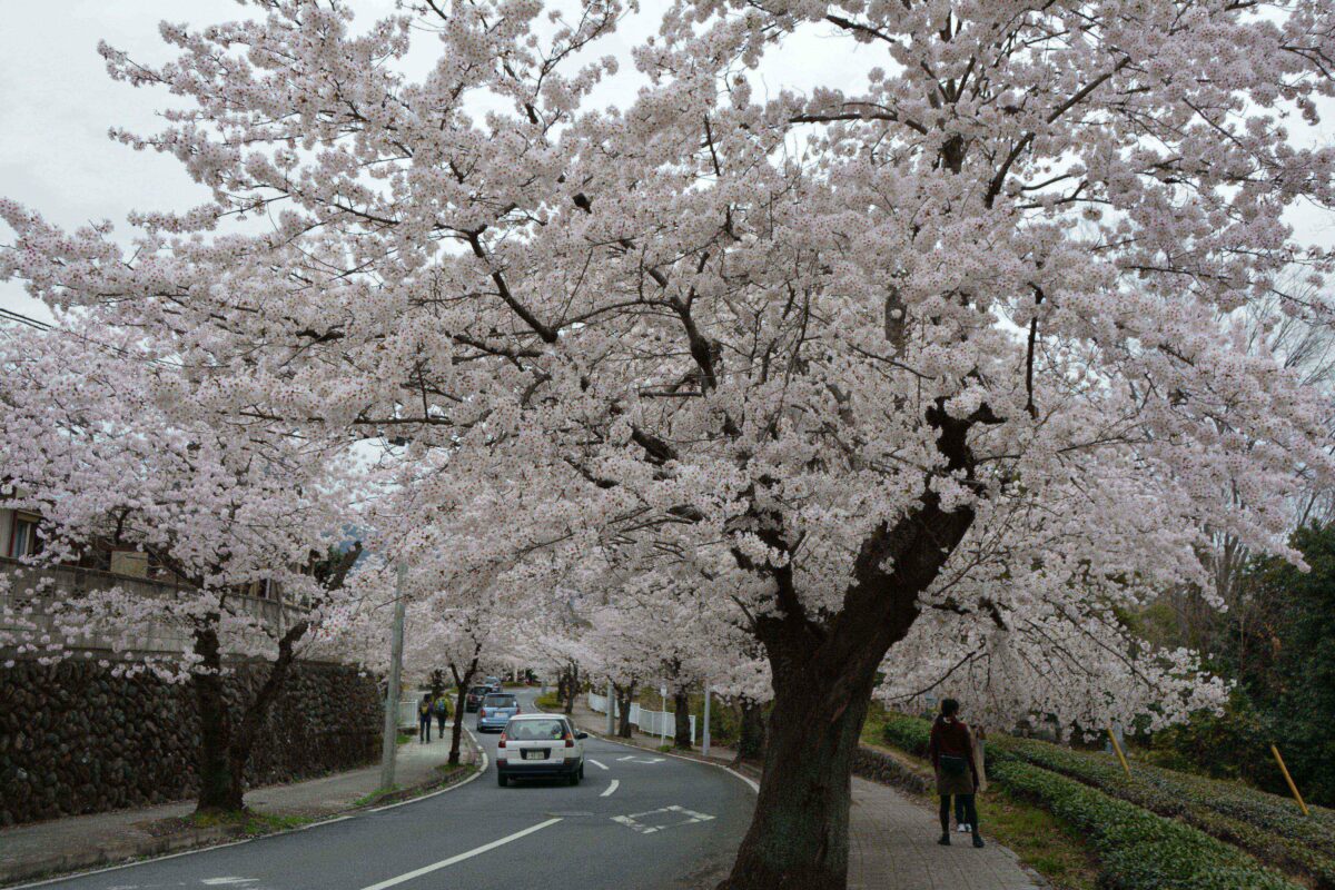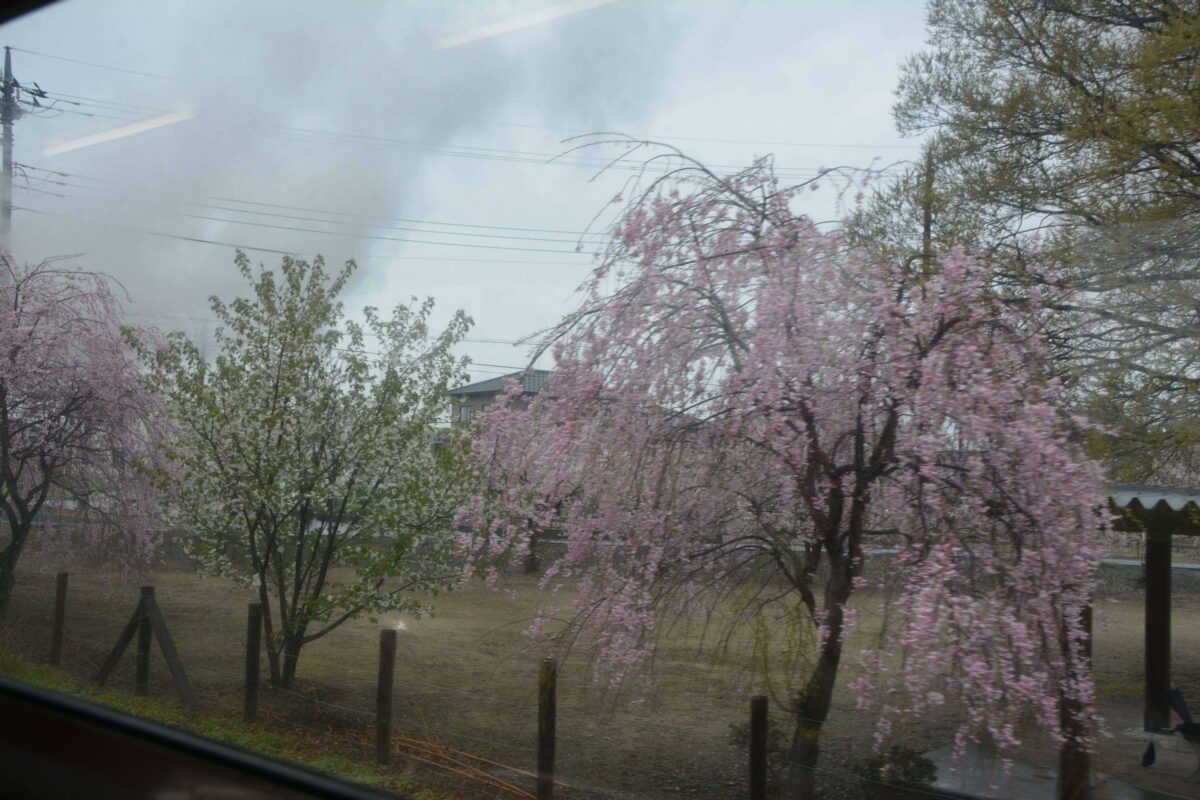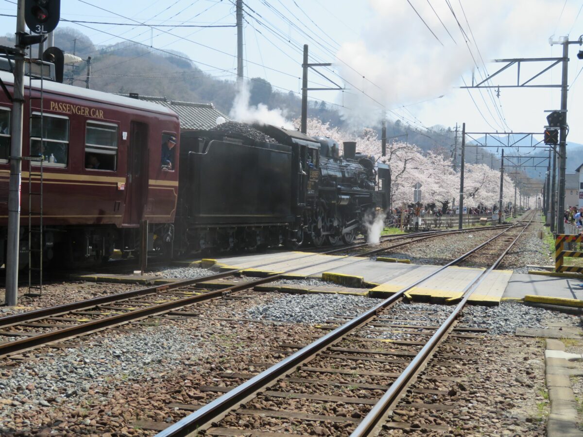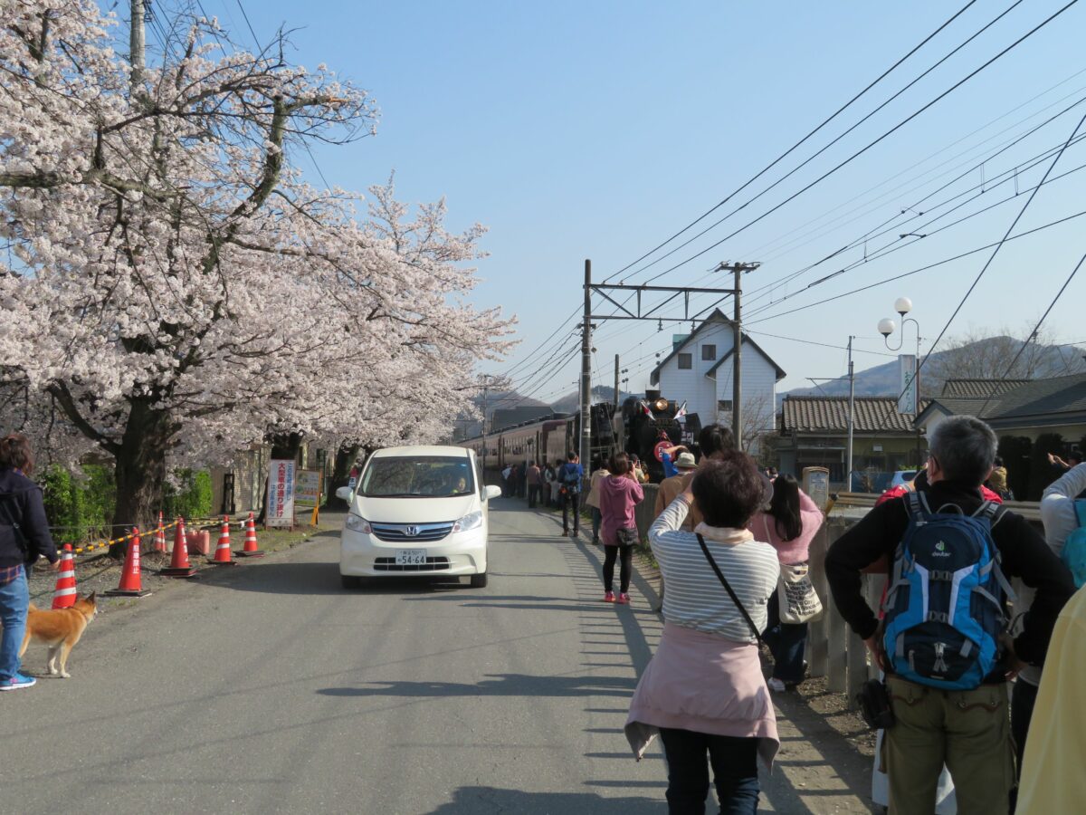 長瀞の南桜通りに沿って走るパレオエクスプレス
