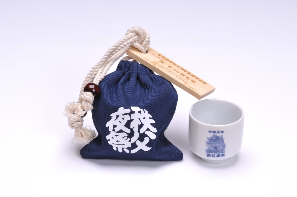 本年の「秩父夜祭記念乗車券」は、木札乗車券・山車曳き子の祭半纏(まつりはんてん)と引き綱をモチーフにした巾着袋・特製ぐい呑みをセットにした特別仕様になっており、記念乗車券でより祭り気分を味わうことができる。