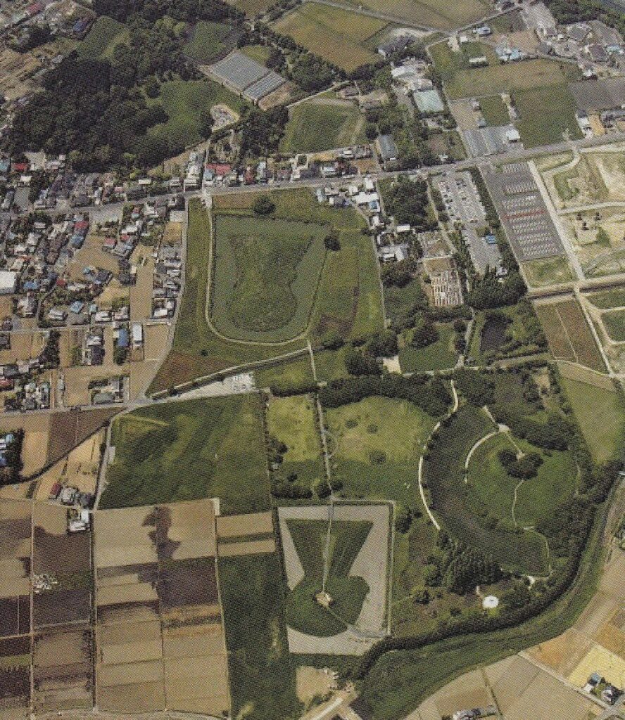 さきたま史跡の博物館のパンフレットに掲載される「さきたま古墳公園」の航空写真