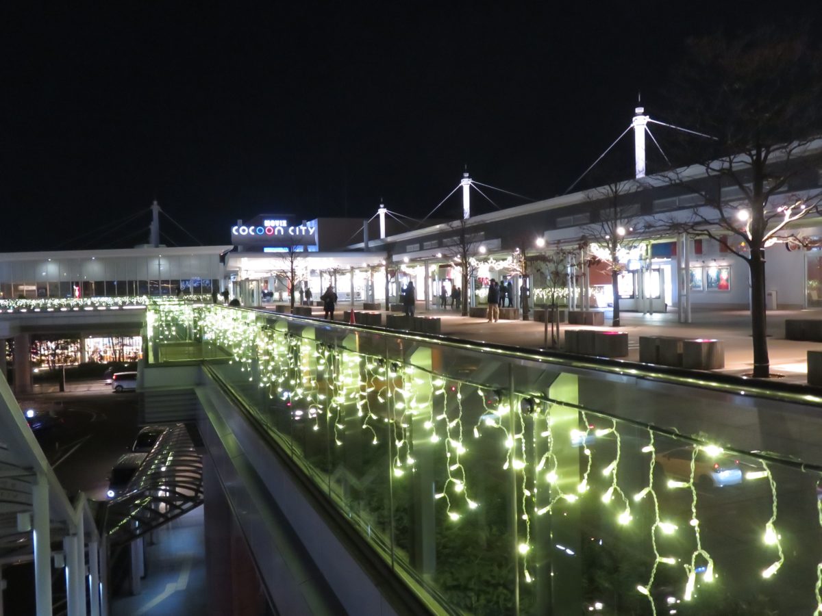JRさいたま新都心駅の東の「コクーンシティ」周辺は毎年、年末年始の夜にはイルミネーションで照らし出されます。日中はショッピングを楽しむ人で賑うエリアが夜には魅惑の空間に変身するのです。
