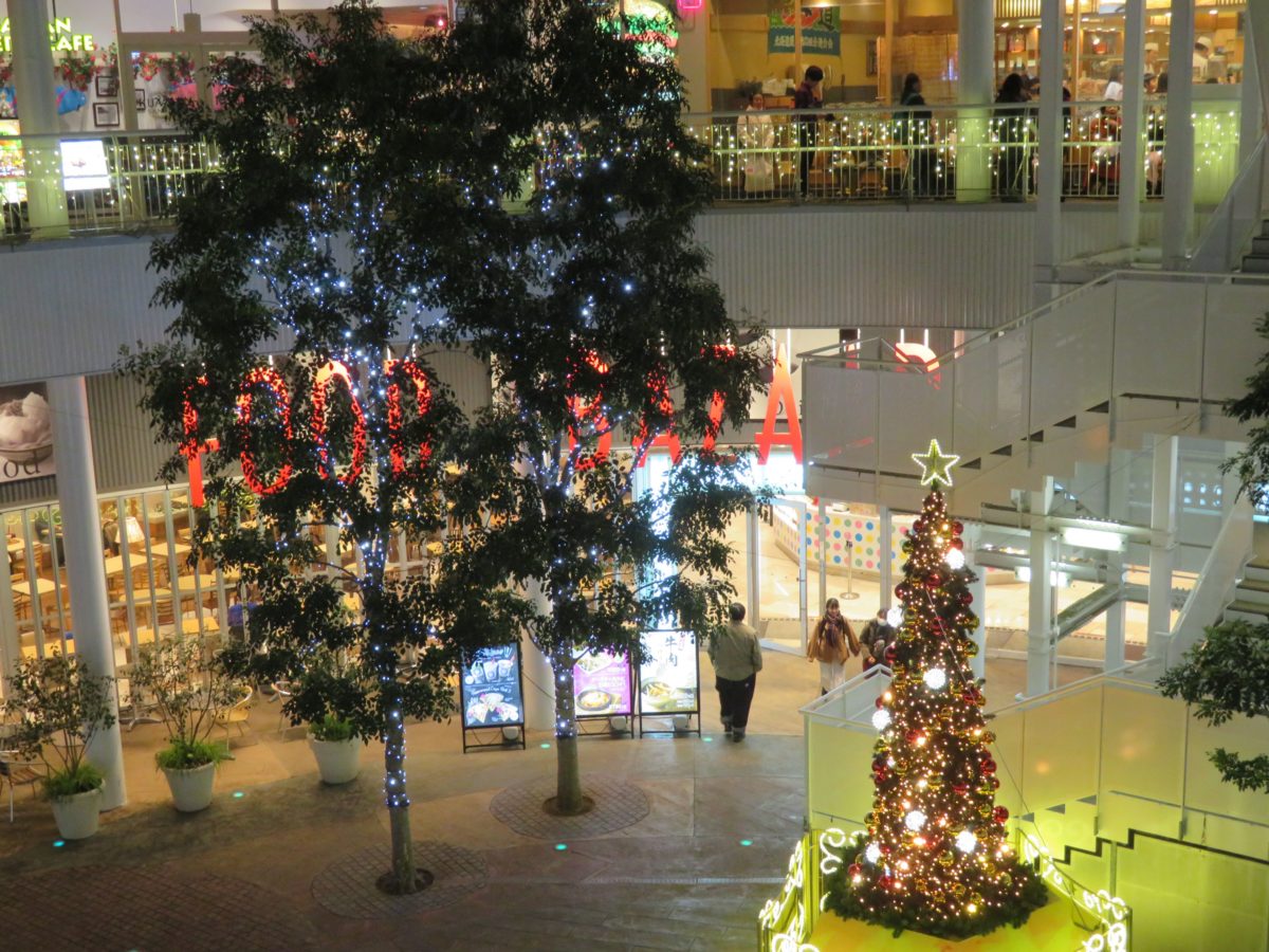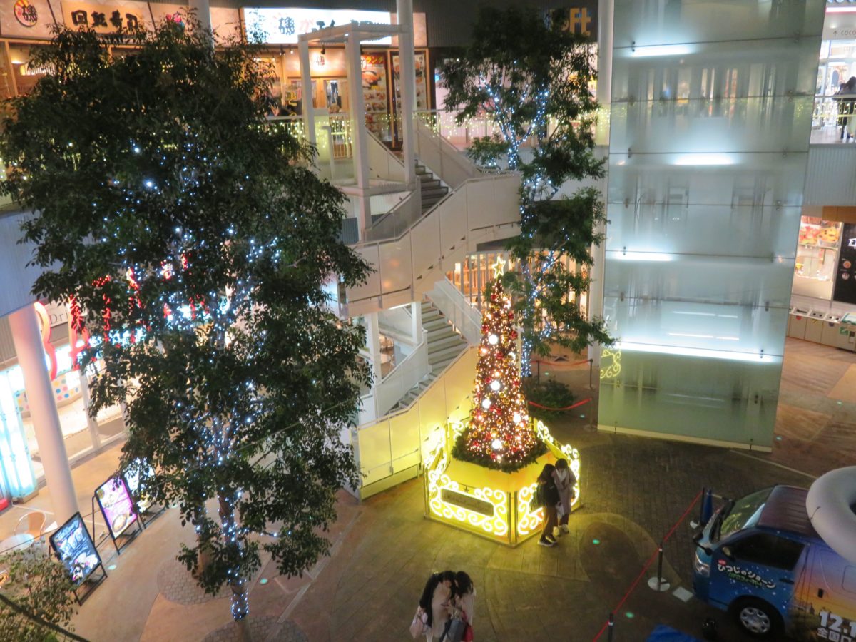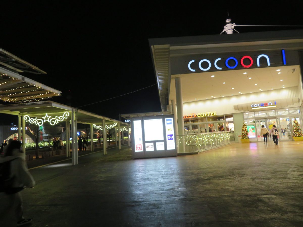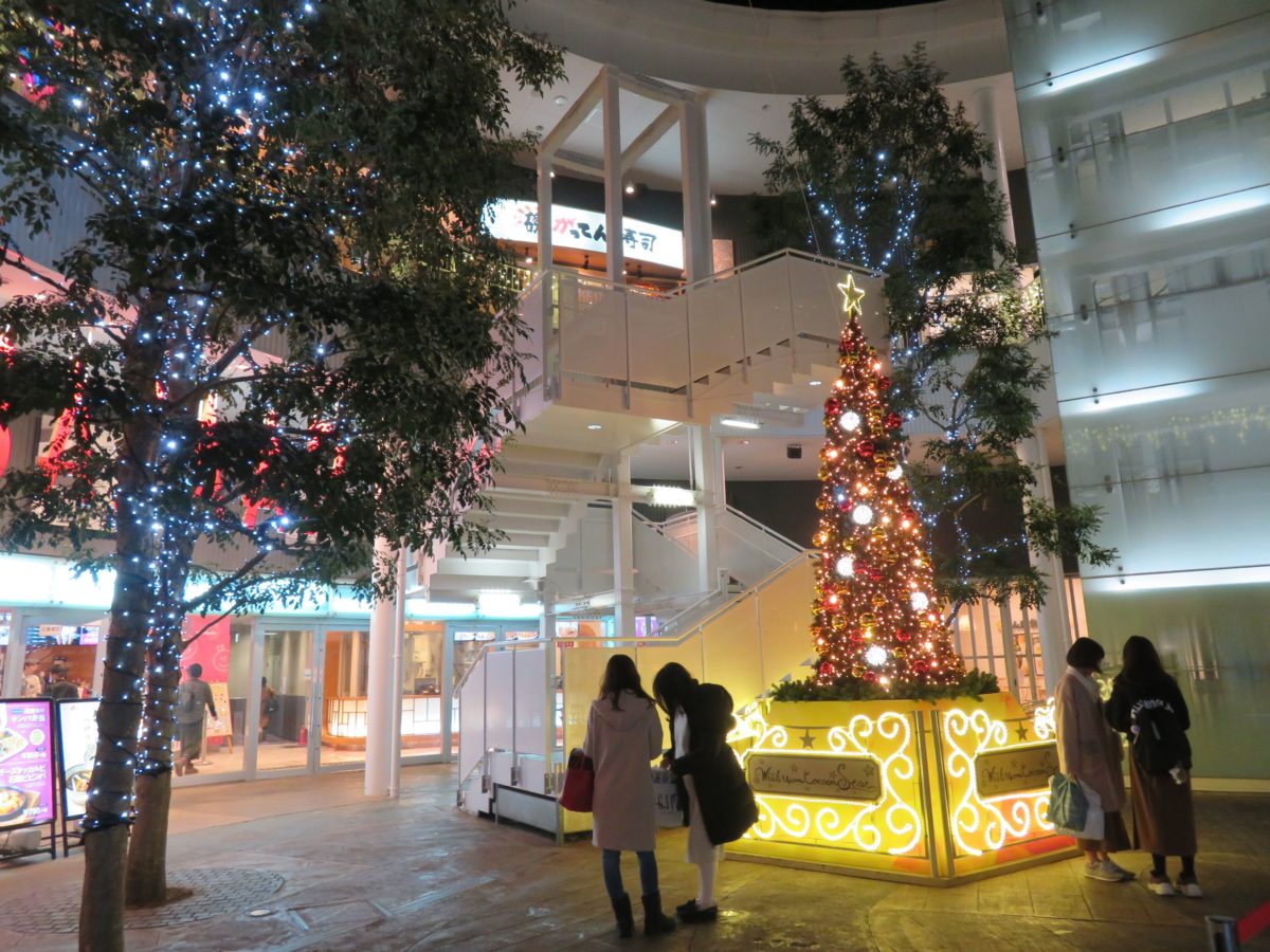 コクーン1の「コクーンプラザ」には12月25日まで、クリスマスツリーが設置されます。周囲には様々な種類のレストランやカフェが軒を連ねているので、夕食の選択肢の幅が広がります。