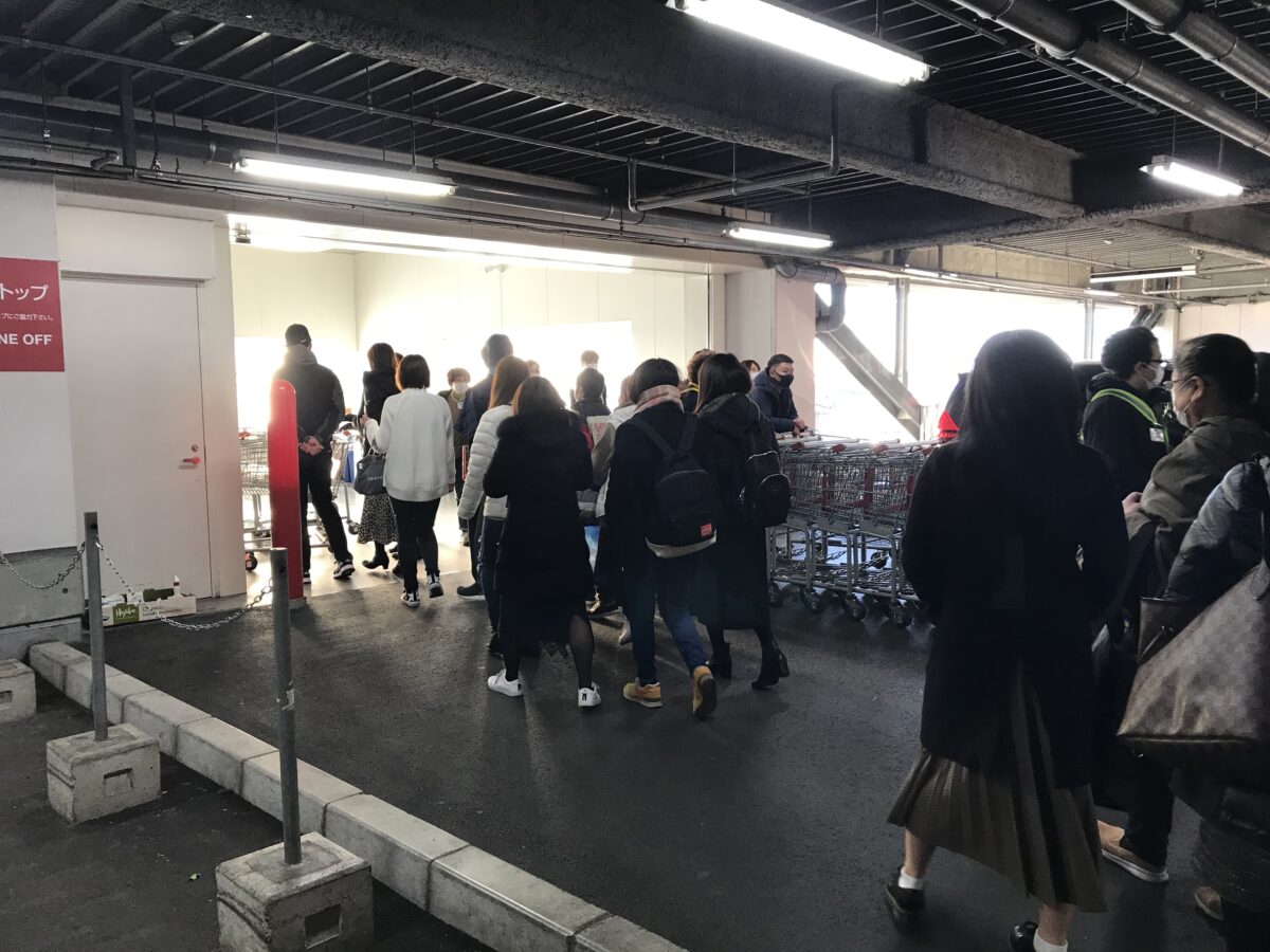 駐車場に車を停めるのに10分、そこから列に並んで入店まで20分。さすがのコストコ人気ですね!