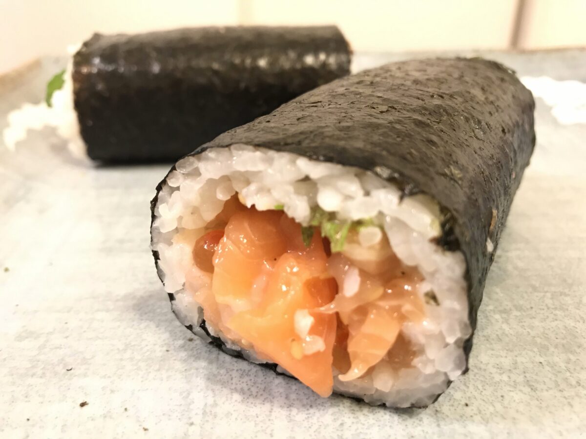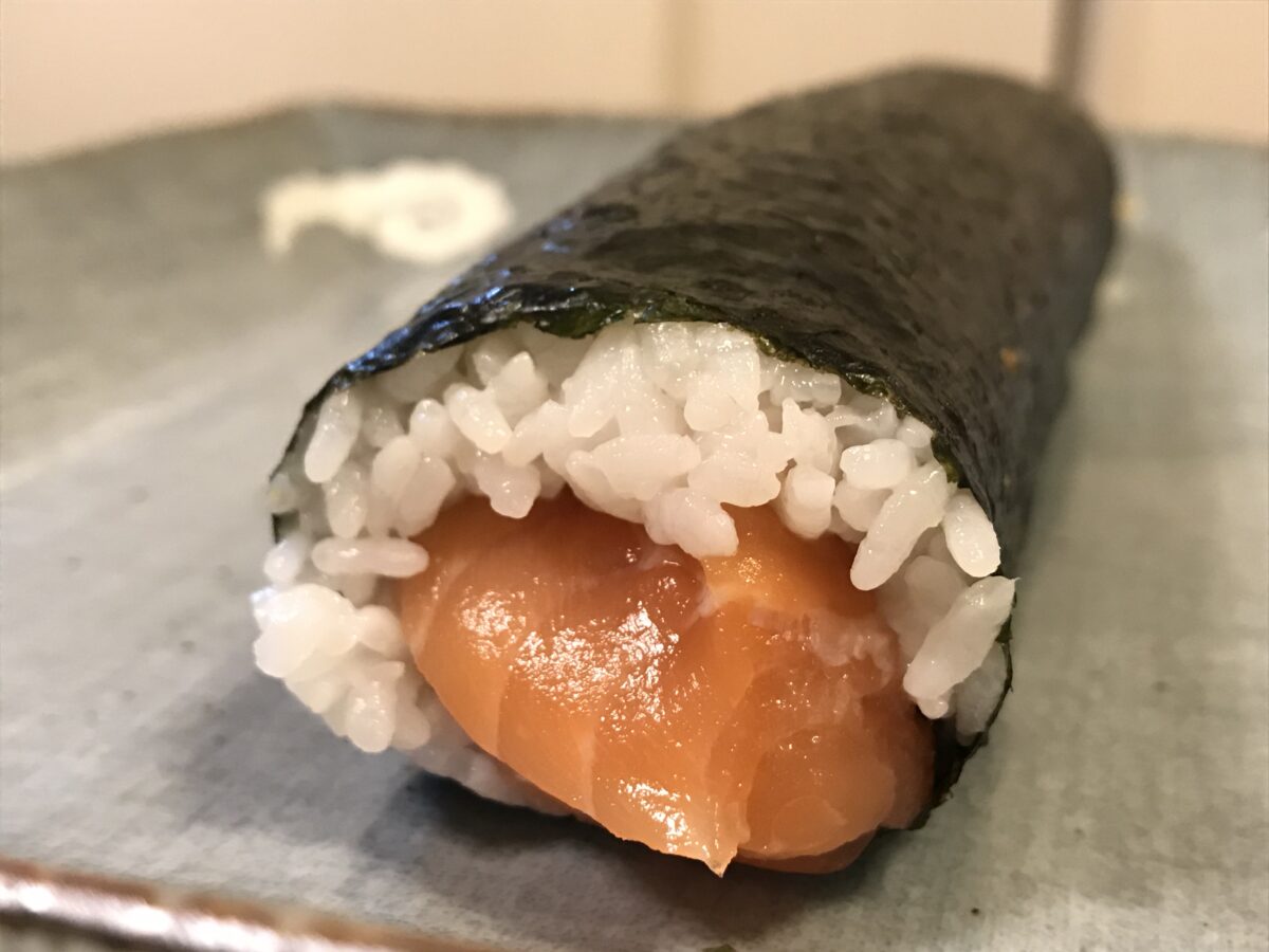 次に食べたのは、極太なサーモンが巻かれた恵方巻!