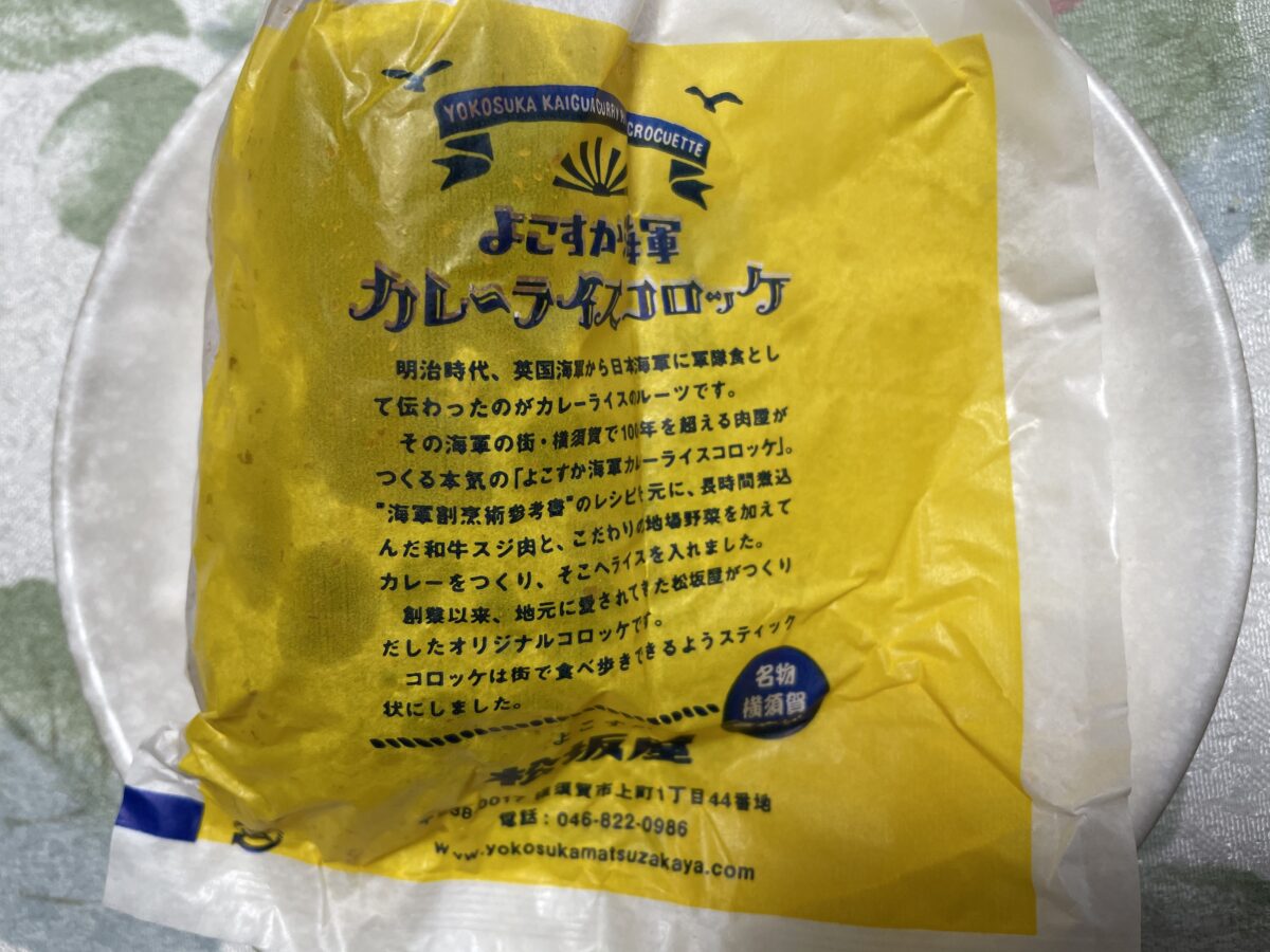 よこすか海軍カレーのルーツが書かれた「カレーライスコロッケ」の包み
