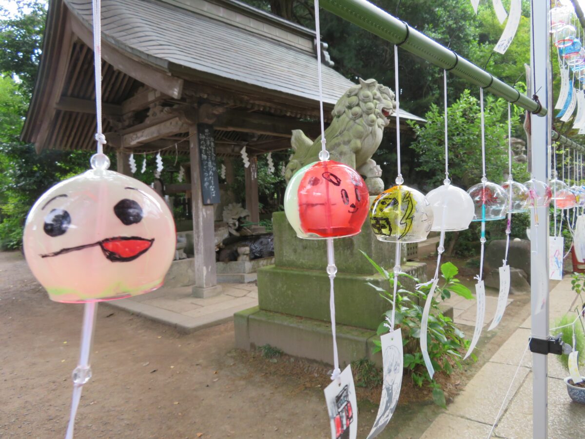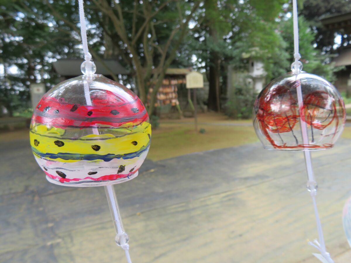 風鈴が吊るされる高さは、随身門側は子ども、拝殿側は大人の身長に合わせいます。子どもも大人も繊細な風鈴の音色を感じとることができます。