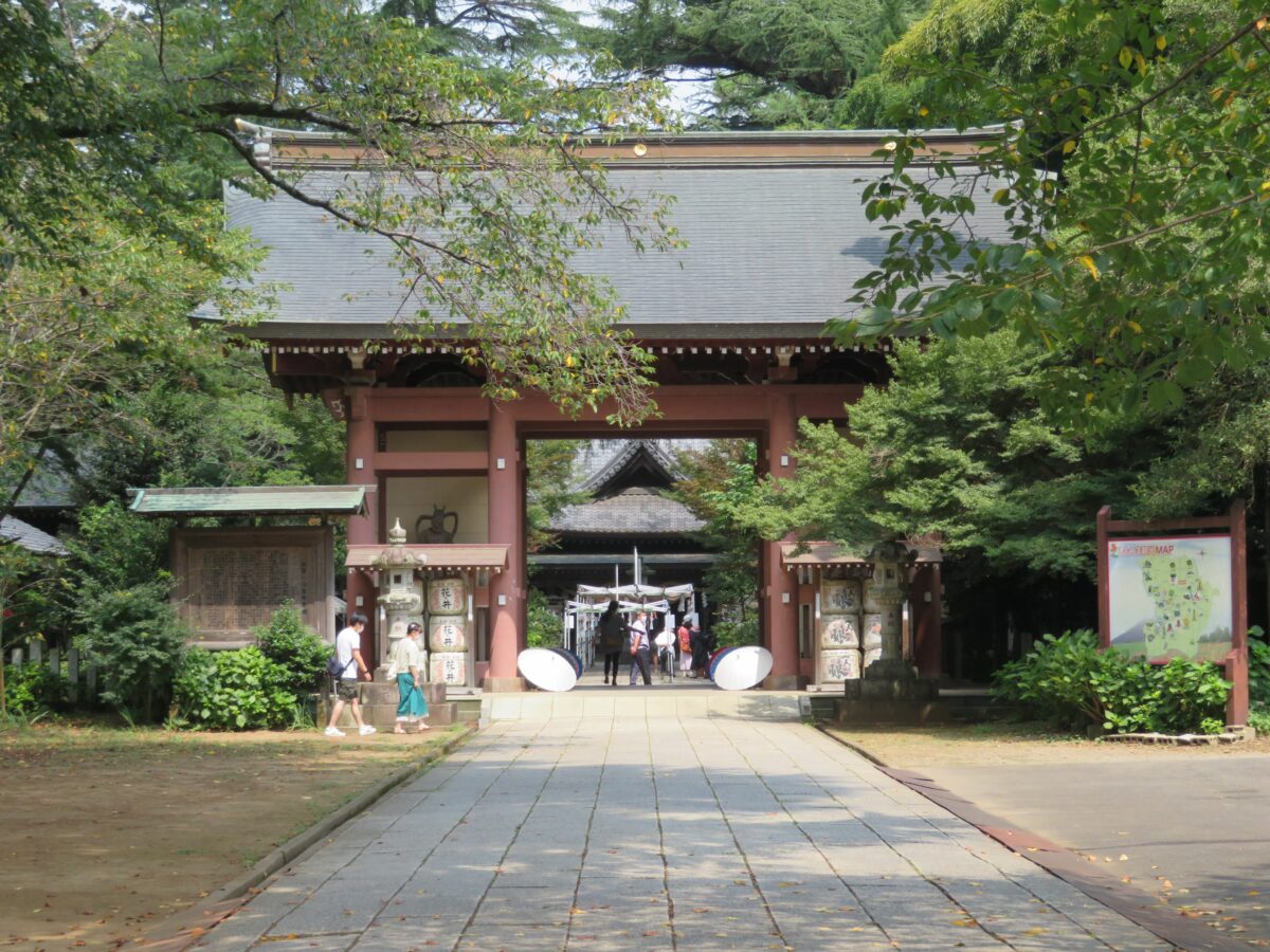 随身門の仁王像の足元の和傘