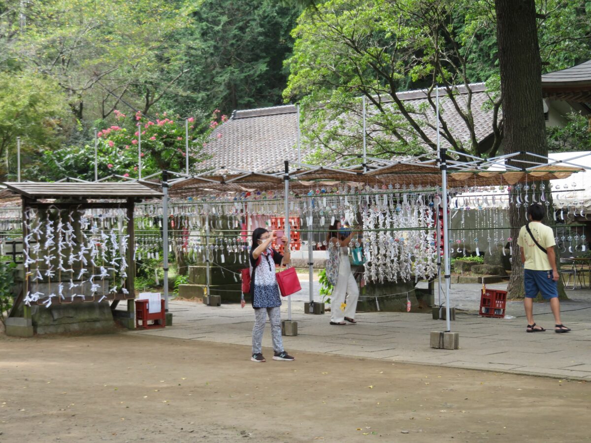 約18メートルの棚には約1000個の風鈴が境内を吹き抜ける風に舞っています。軽やかな響きで千古の社に涼感を運んでいるようです。