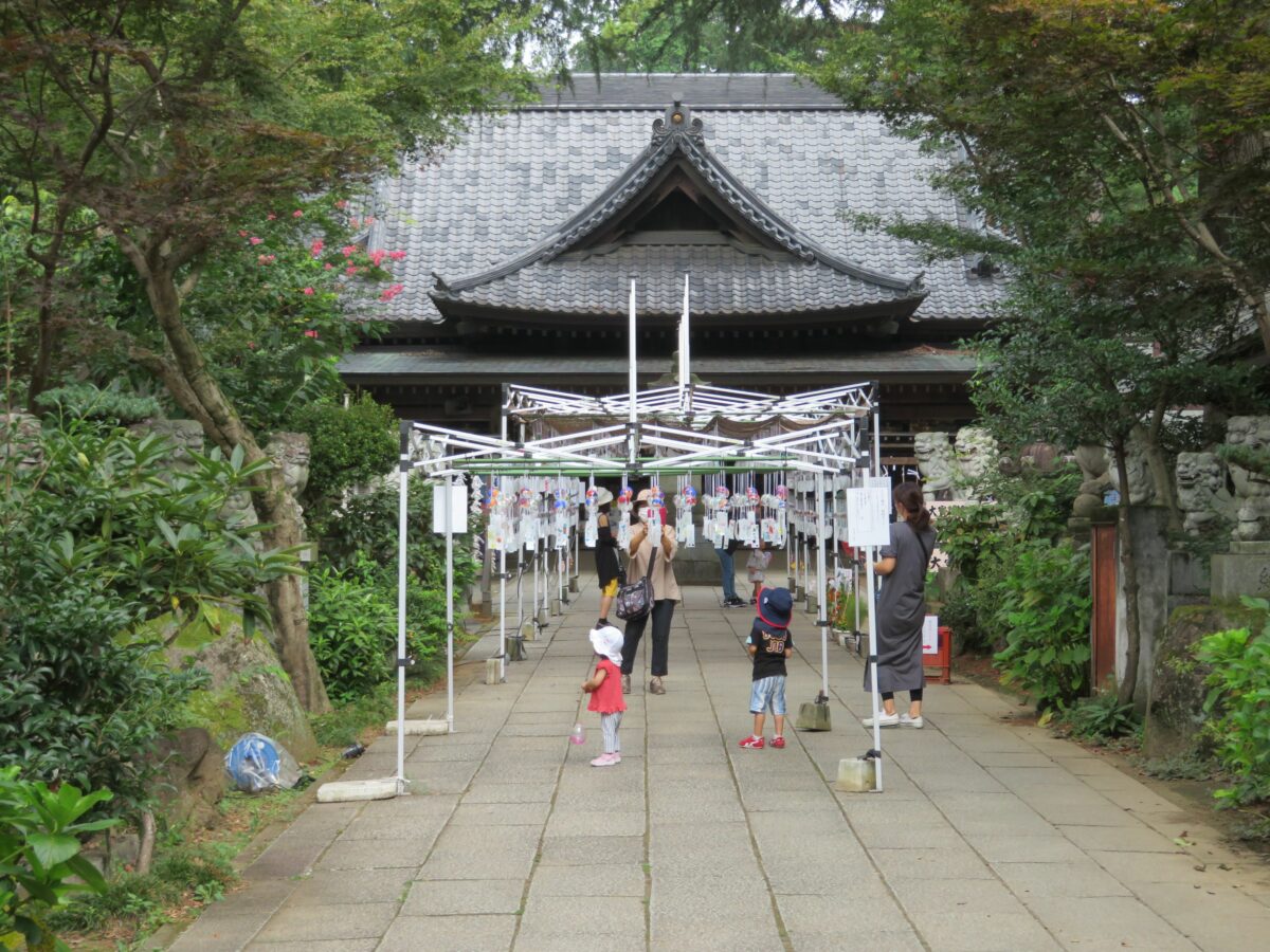 茨城県の下妻市に社殿を構える大宝八幡宮では、2020年から盛夏に「大宝八幡宮風鈴まつり」が開催されています。歴史感を漂わせる随身門と拝殿を繋ぐ石畳みの参道に、風鈴のトンネルが設けられ境内を吹き抜ける風に舞いながら清々しい音色を響かせ涼感を運んでいるかのようです。