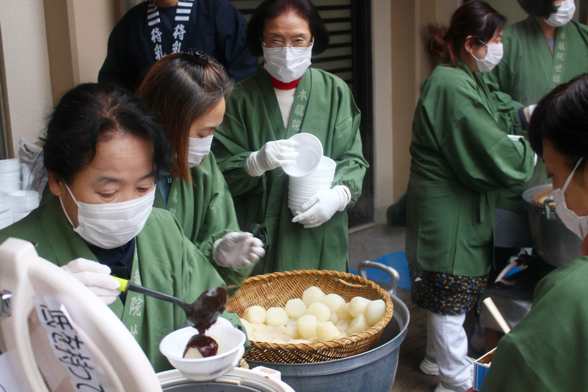 11時から30分の大般若家内安全法要が終わると、いよいよ大根まつりの目玉「ふろふき大根」のお振舞がはじまります!ご利益のある大根を食べられるとあって、朝から長蛇の列ができています!