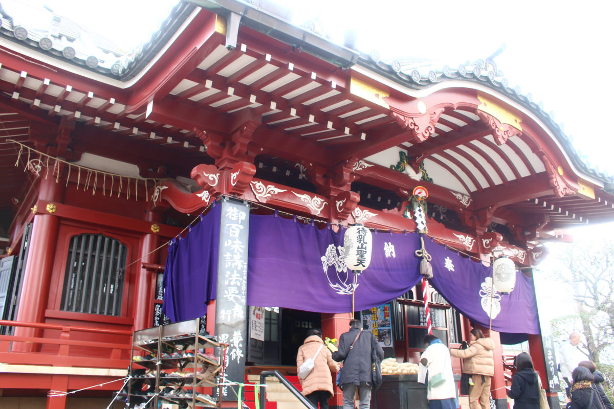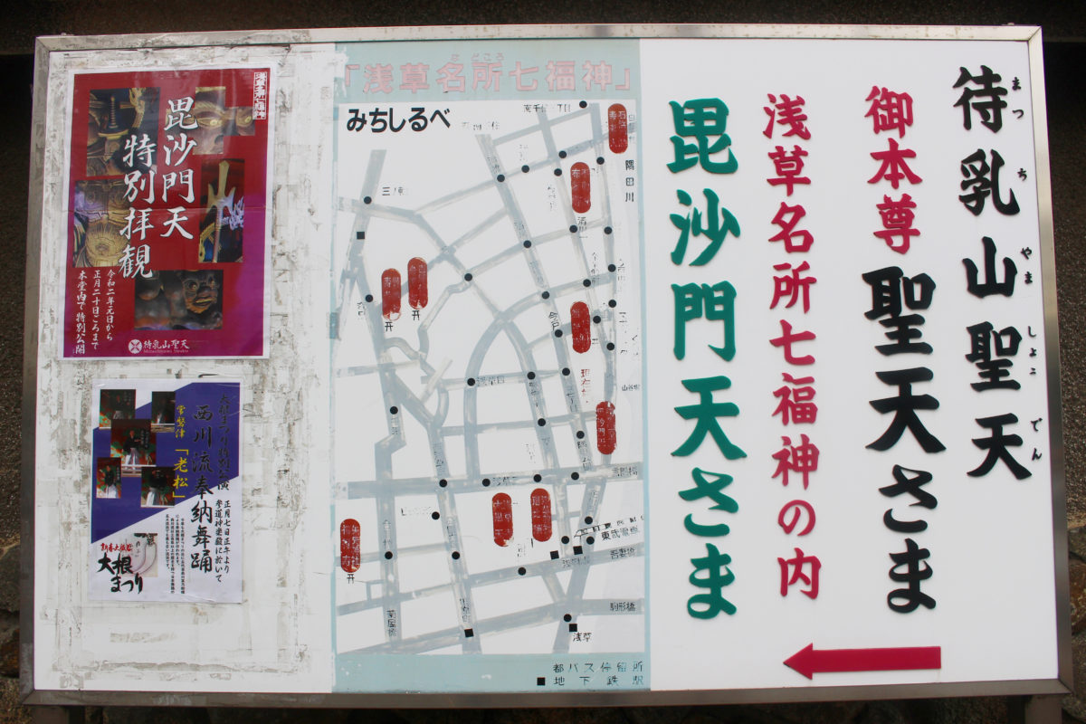 待乳山聖天は浅草駅から北へ10分程度歩いた場所にある浅草寺の子院のお寺です。浅草寺と並び浅草名所七福神の一つに数えられていて、毘沙門天が祀られています。大根まつりの日は、特別に毘沙門天を拝観することができるのもチェックポイントです!