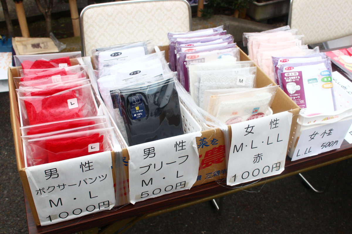 “しも”つながりだからでしょうか?赤パンをはじめ、多くの下着が売られています。