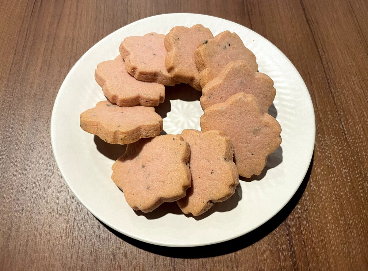 食感はバターが香るしっかりめで、食べ応えもばっちり。桜の味は少しの塩気と合わせて上品に香っていて、高級感があっておいしいです!しっかりしたバターの香りのおかげで、お茶にもコーヒーにも合いそうな味だと思いました。